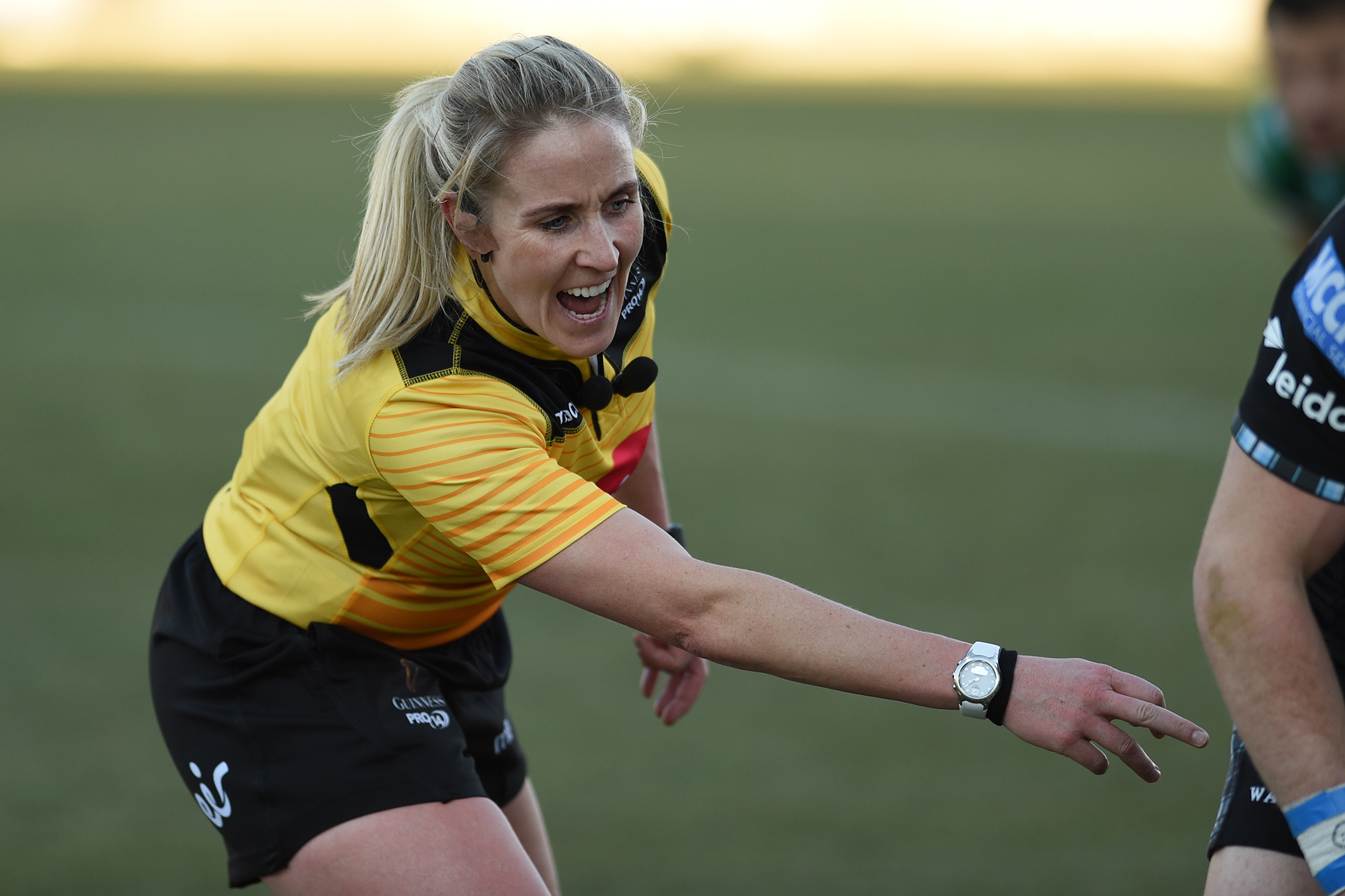 IRFU international referee Joy Neville in GUINNESS PRO14 action at Stadio di Monigo in Treviso earlier in the year ©INPHO/Elena Barbini