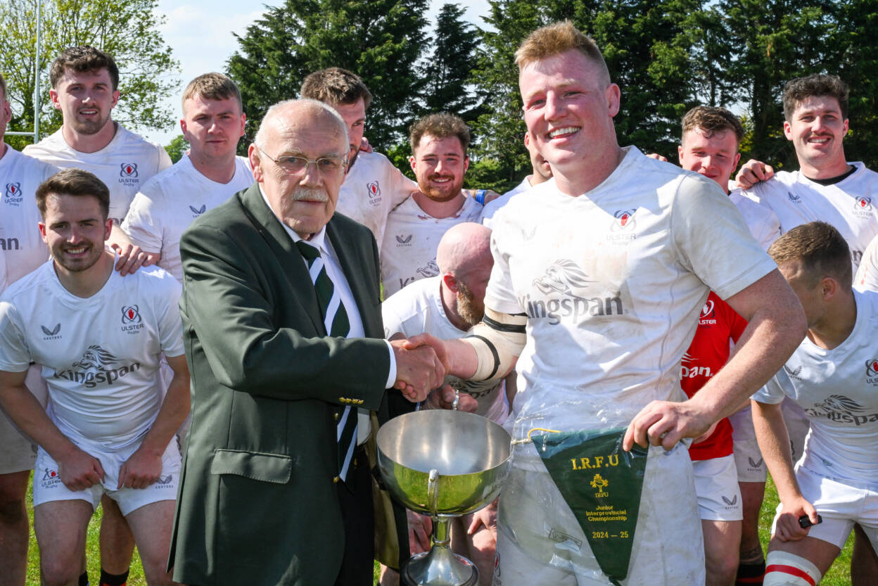 IRFU Committee Member John McKibbin presented the trophy and pennant afterwards to Ulster captain Curtis Pollock, who had led his team to two away successes in the previous rounds – 49-41 against Leinster, and 30-0 away to Connacht.
