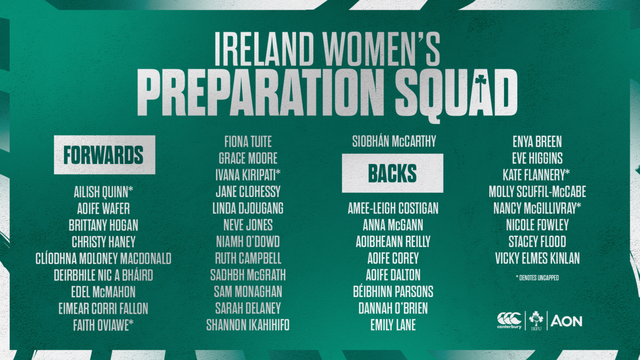 Connacht duo Faith Oviawe and Ailish Quinn, Munster’s Kate Flannery, and Exeter Chiefs’ Irish-qualified centre Nancy McGillivray will link up with the squad. McGillivray finishes an England transition contract on June 30, and will link up with the Ireland group on July 1.