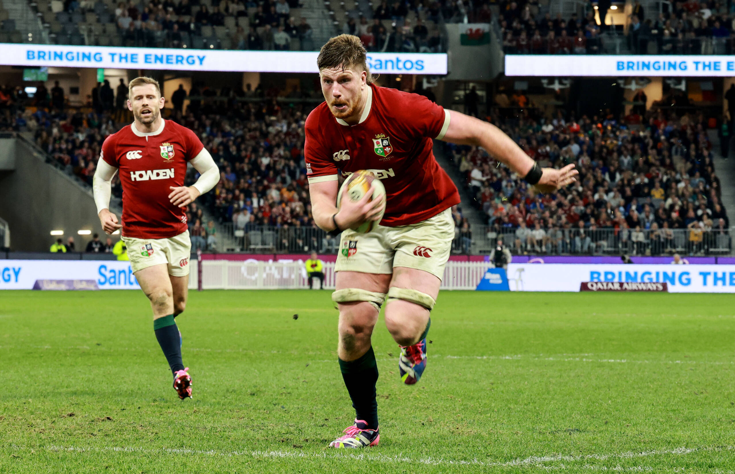Debutant lock Joe McCarthy runs in his try during the British & Irish Lions' 54-7 success against the Western Force ©INPHO/Dan Sheridan