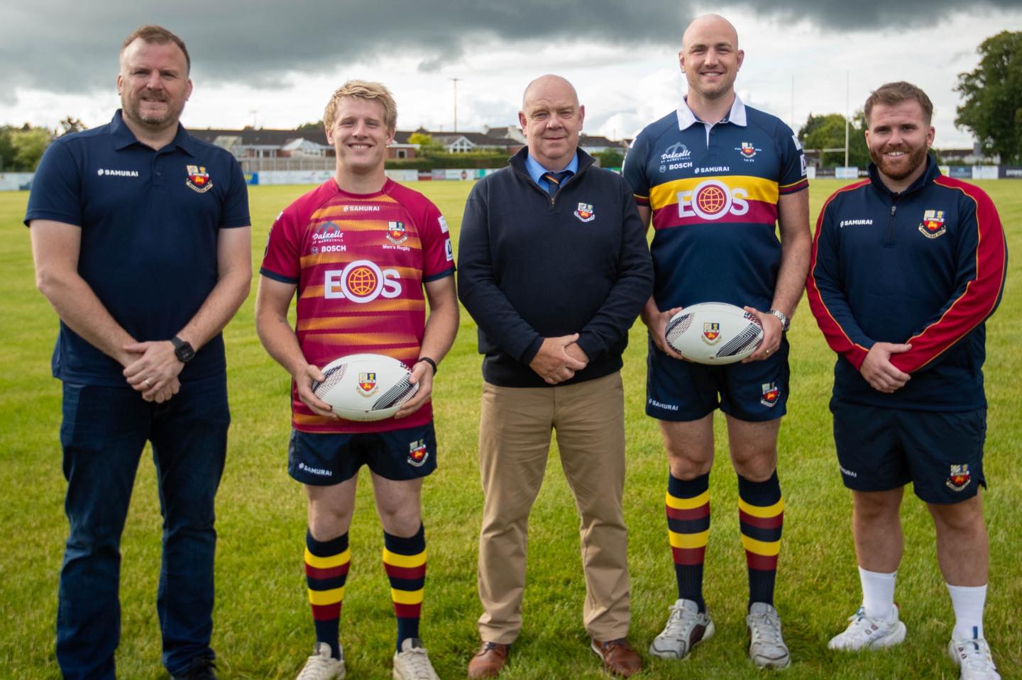 Pictured are Banbridge RFC director of rugby Marc Eadie, first team vice-captain Robert Lyttle, Honorary President Clifford Harris, club captain Alexander Thompson, and head coach Rob Logan ©Banbridge RFC