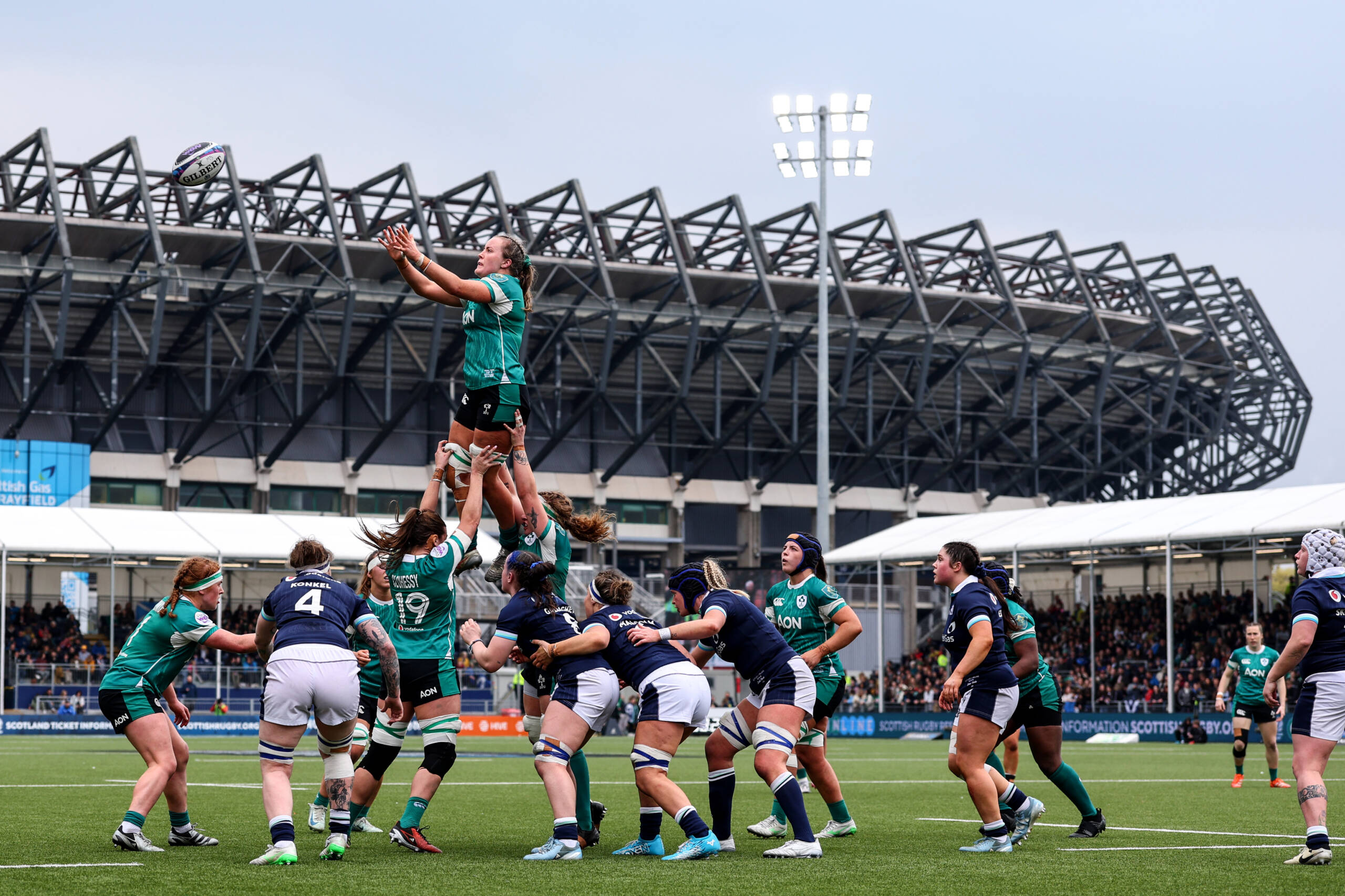 2025 Guinness Women's Six Nations Championship Round 5, Hive Stadium, Edinburgh, Scotland 26/4/2025 Scotland vs Ireland Ireland's Fiona Tuite wins a lineout Mandatory Credit ©INPHO/Ben Brady