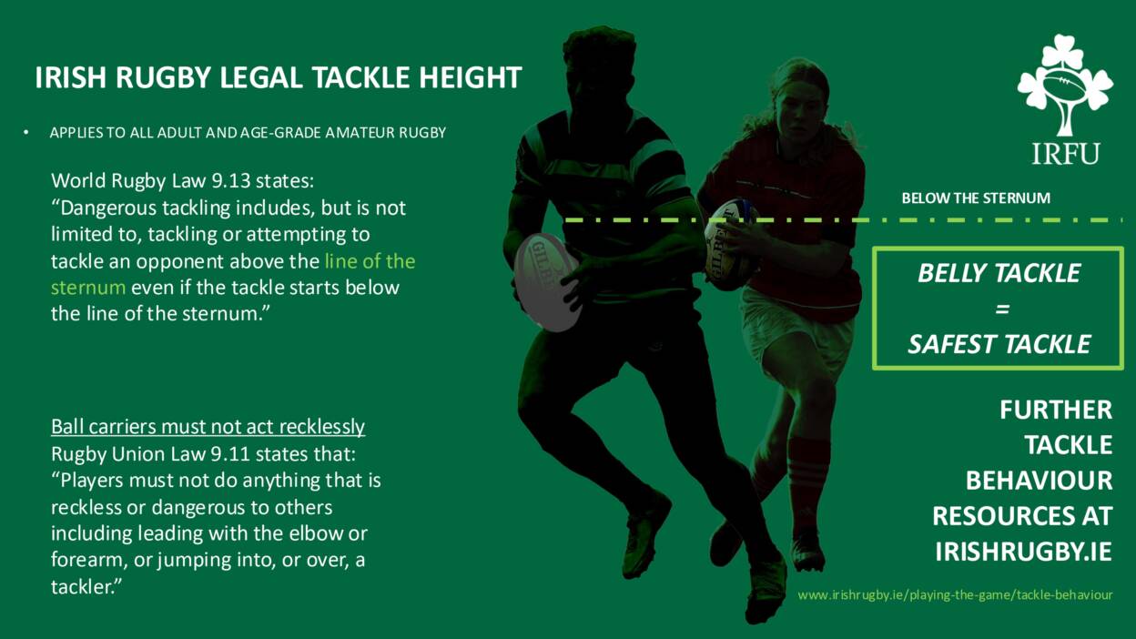 “We feel the evidence provided by the data shows a clear benefit to having a lower tackle height, and that is why we are committing to law that the legal tackle height in Ireland is below the baseline of the sternum.