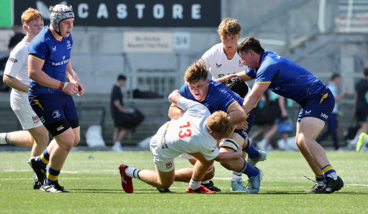 In the first match of Sunday’s age-grade triple header at Affidea Stadium, Ulster led early on through Elias Agbonkpolor’s try but Leinster, last year’s champions at this level, got on a roll to secure their bonus point by half-time.