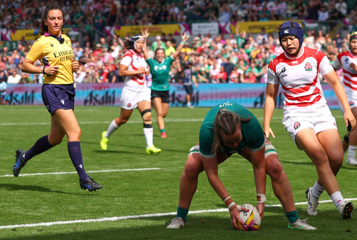 Tuite’s beaming smile said it all after she had opened her scoring account, and Ireland managed to hit Japan for six in the end as her fellow World Cup debutants Amee-Leigh Costigan, Neve Jones, Béibhinn Parsons, Higgins, and Enya Breen also touched down.