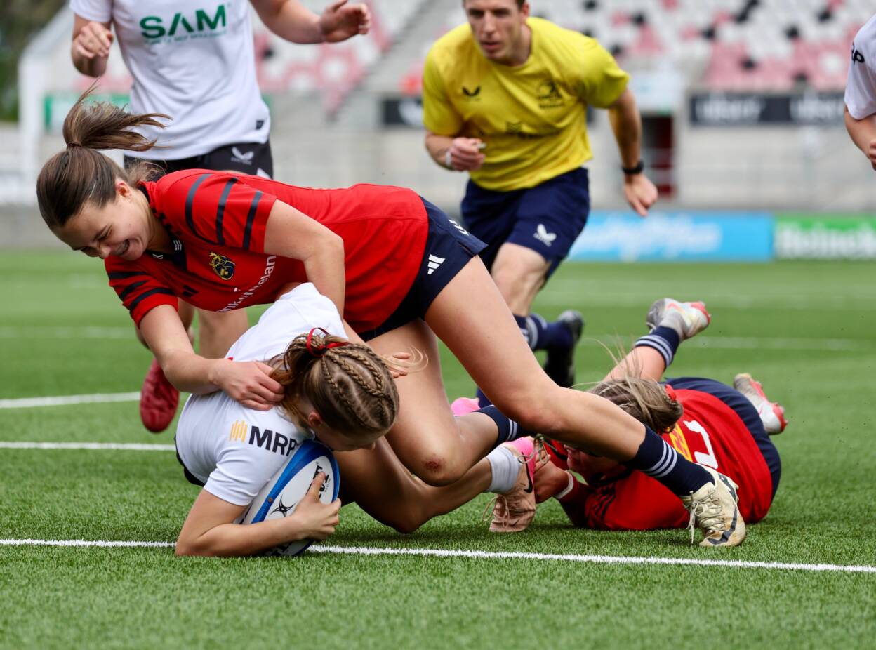 The back-three all crossed the whitewash in the third round, with Ennis winger Abi Kelly maintain her run of tries with her third in as many games. Lani O’Donovan and Lily Byrne, who captains Munster from inside centre, both played for the Ireland Under-18s earlier this year.