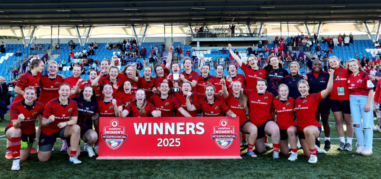 Munster lifted the Vodafone Women’s Interprovincial Championship trophy for the first time since January 2023, delivering a dominant performance to beat Leinster 50-15 at Energia Park.