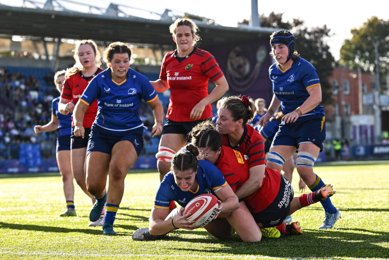Things were just not going right for Leinster, whose captain Molly Boyne was frustratingly close to a turnover before Munster claimed their third try. Alana McInerney was set loose by a Finn kick, and popped the ball up out of a tackle for Corey to finish from eight metres out.