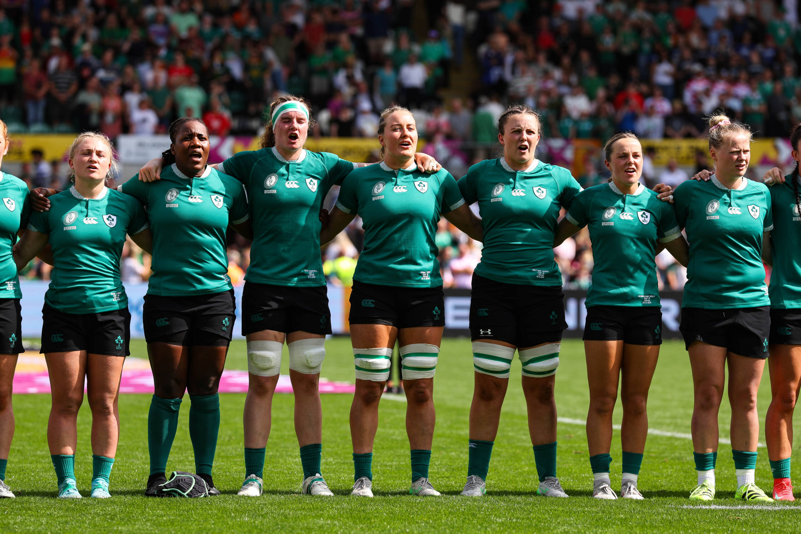 2025 Women's Rugby World Cup Pool C, cinch Stadium at Franklin's Gardens, Northampton, England 24/8/2025 Ireland vs Japan A view of the Irish team during the anthem Mandatory Credit ©INPHO/Ben Brady