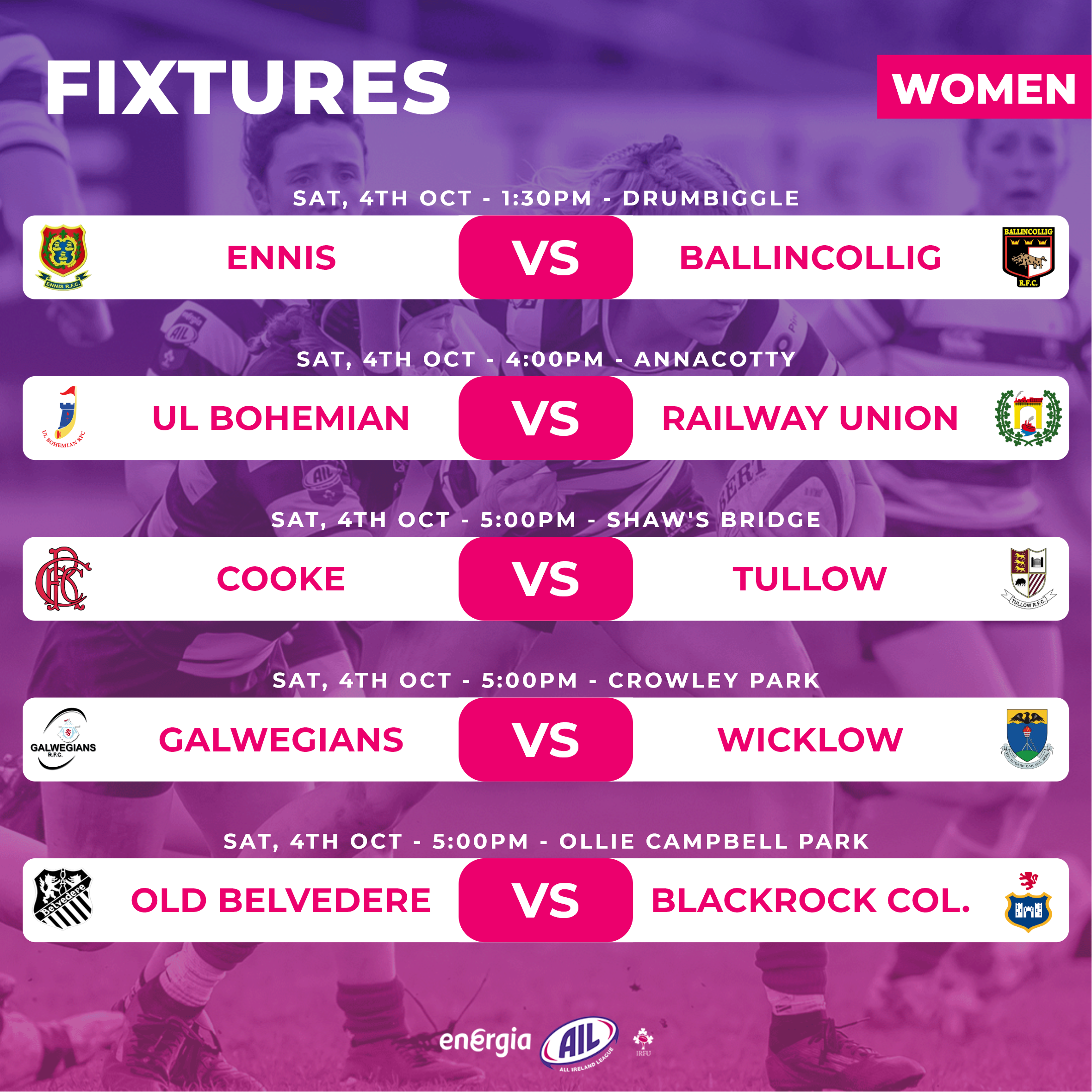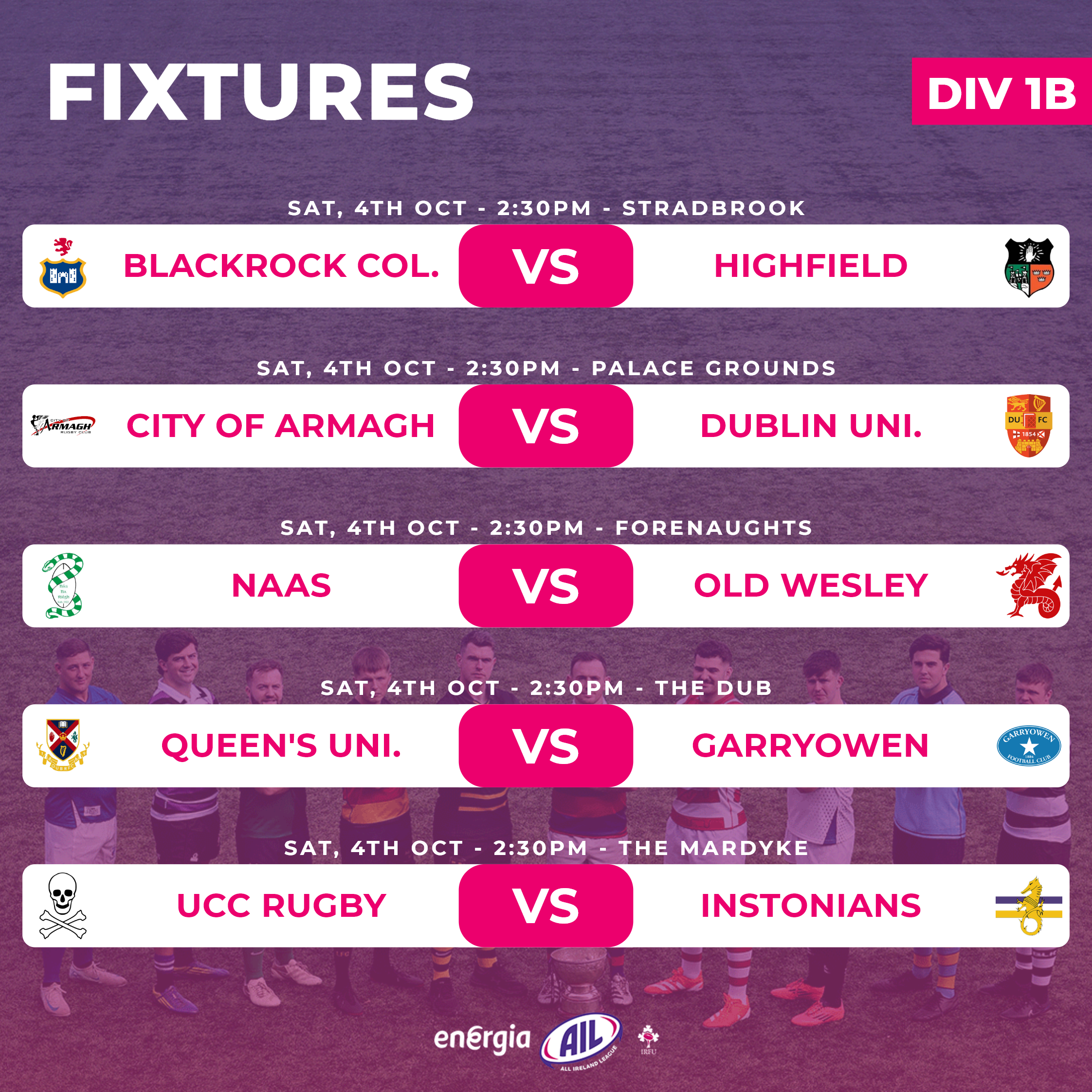 Inst, Trinity, Wesley and Highfield lead the way after Round 1 and all four are on the road this weekend, meanwhile Garryowen make the trip north to Dub Lane.