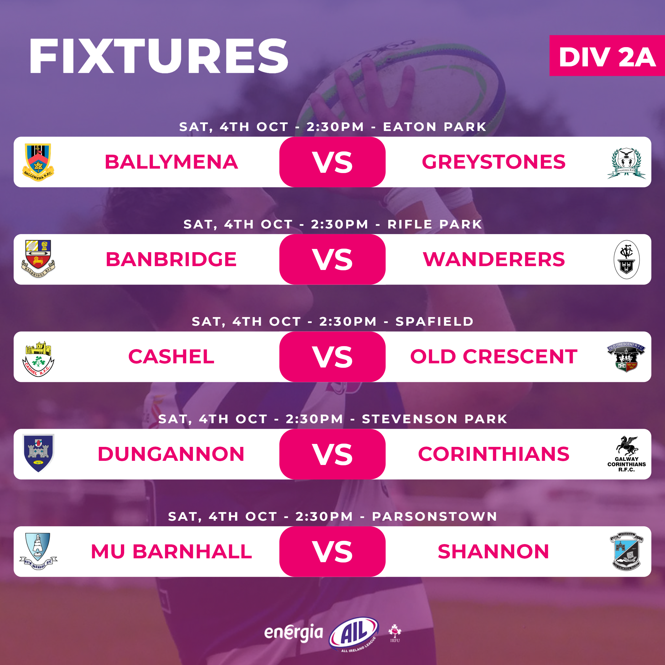 Dungannon and Corinthians both picked up a try bonus on Day 1; they face each other this weekend in Stevenson Park and there’s an all Munster clash featuring Cashel and Old Crescent.