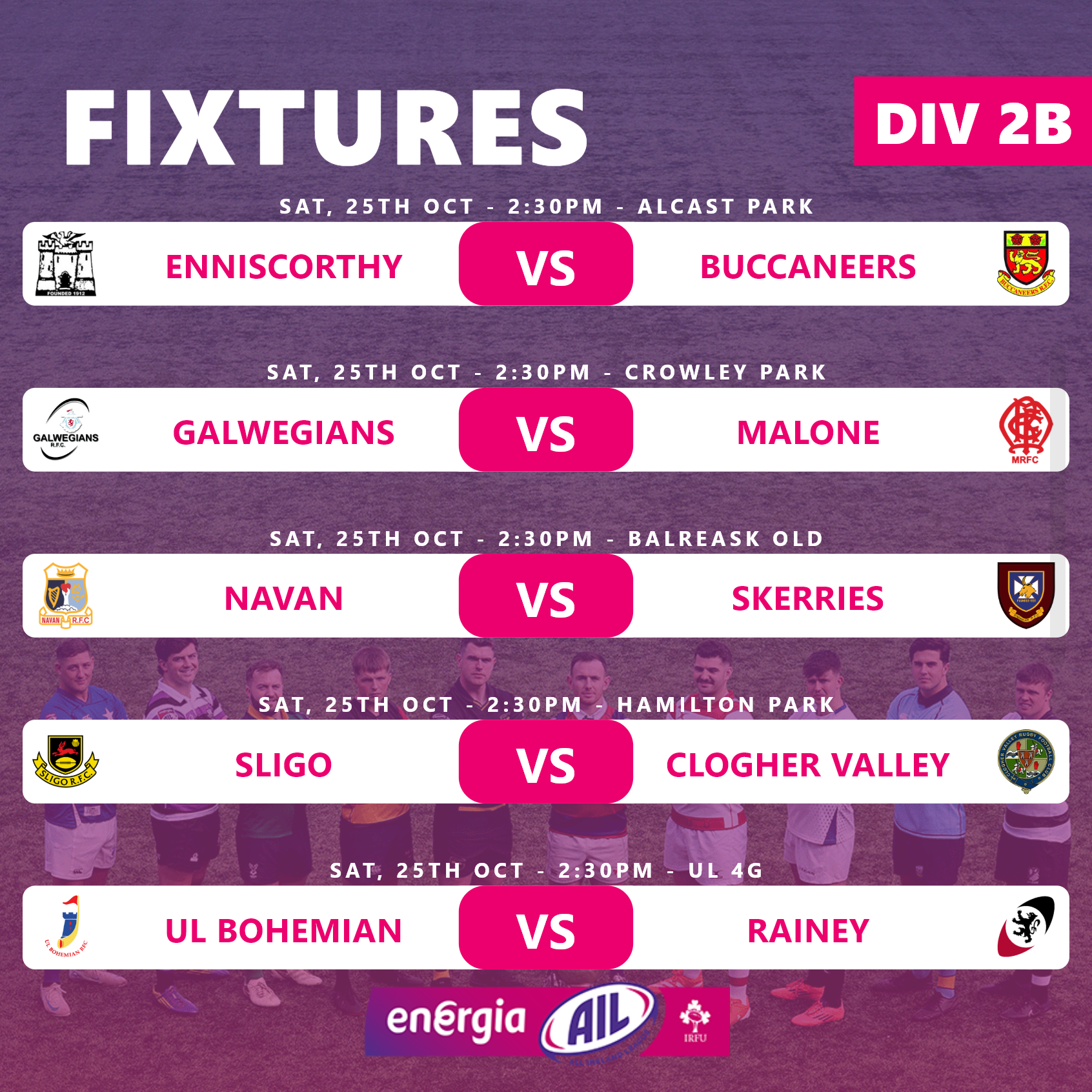 Leaders Galwegians have had the perfect start to the season with three bonus point victories, but there is only a point between them and Saturday’s opponents, fourth-placed Malone, who have also won three from three. Crowley Park will be lively come kick-off.