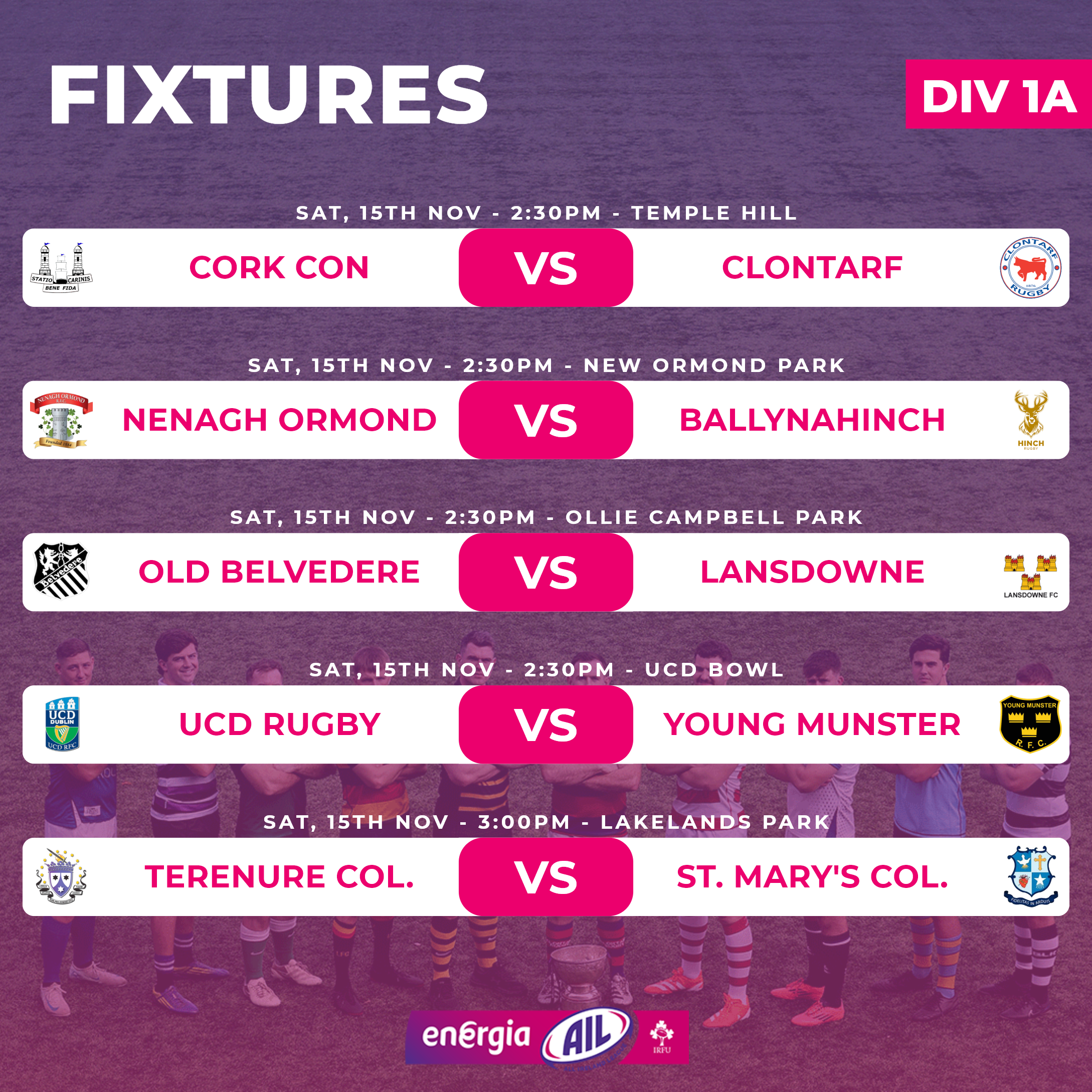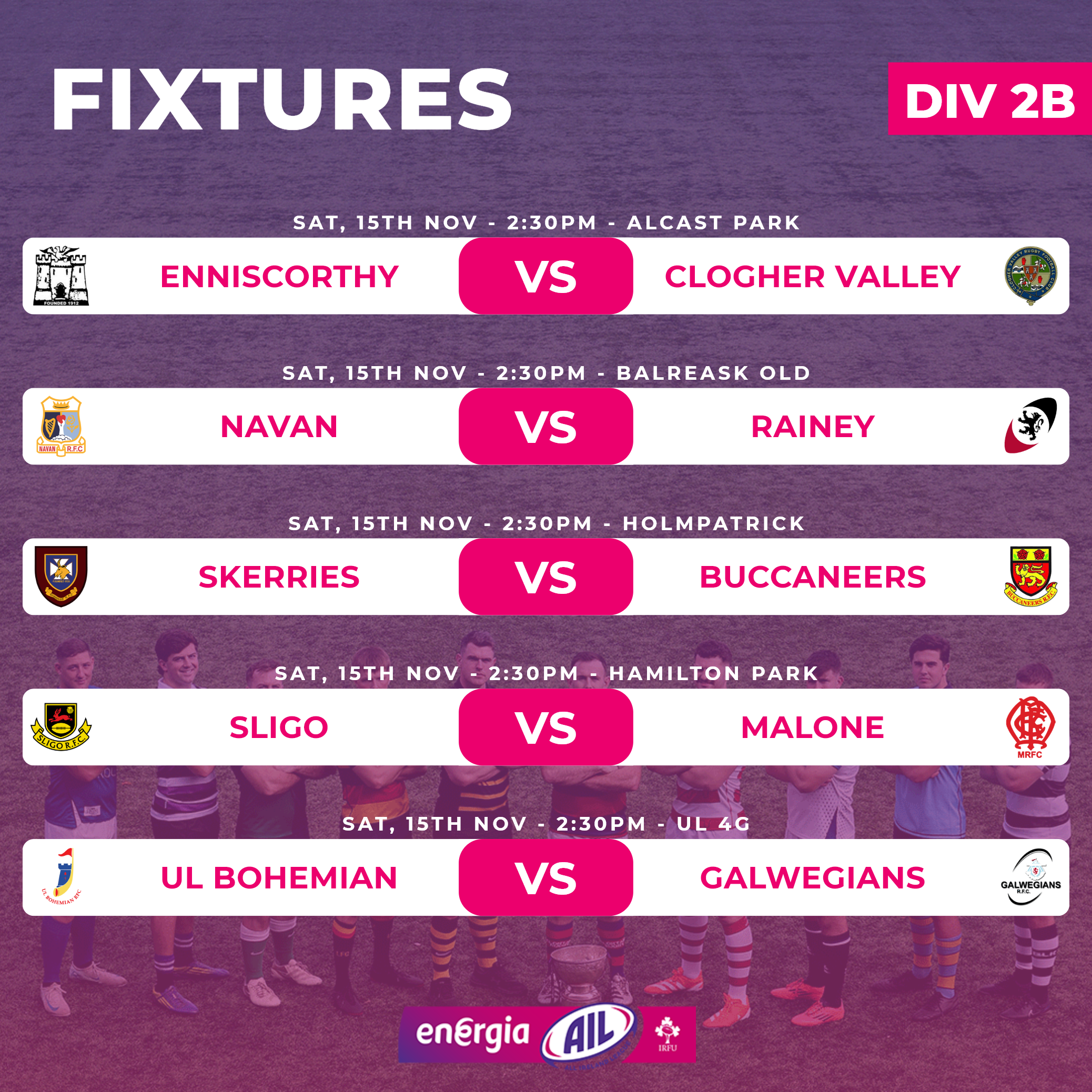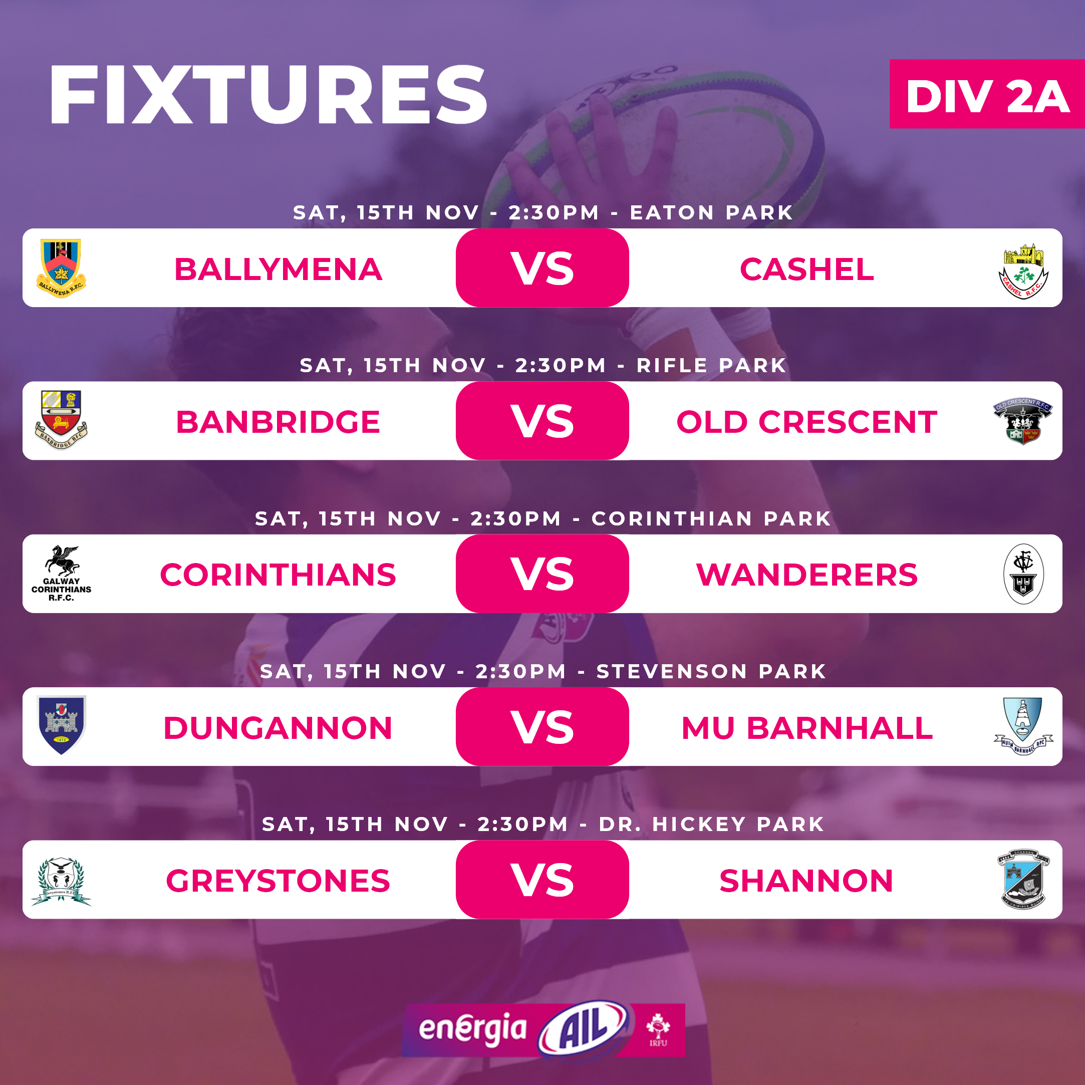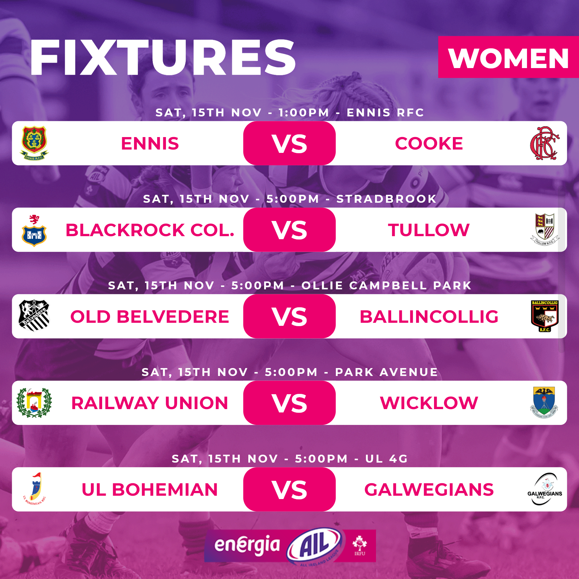 Not to be left out of the vogue for top-of-the-table tussles, Division 2B leaders Galwegians make the trip to UL Bohemian with both sides currently unbeaten. Following their Energia Bateman Cup semi-final defeat, Sligo entertain third-placed Malone in Strandhill.