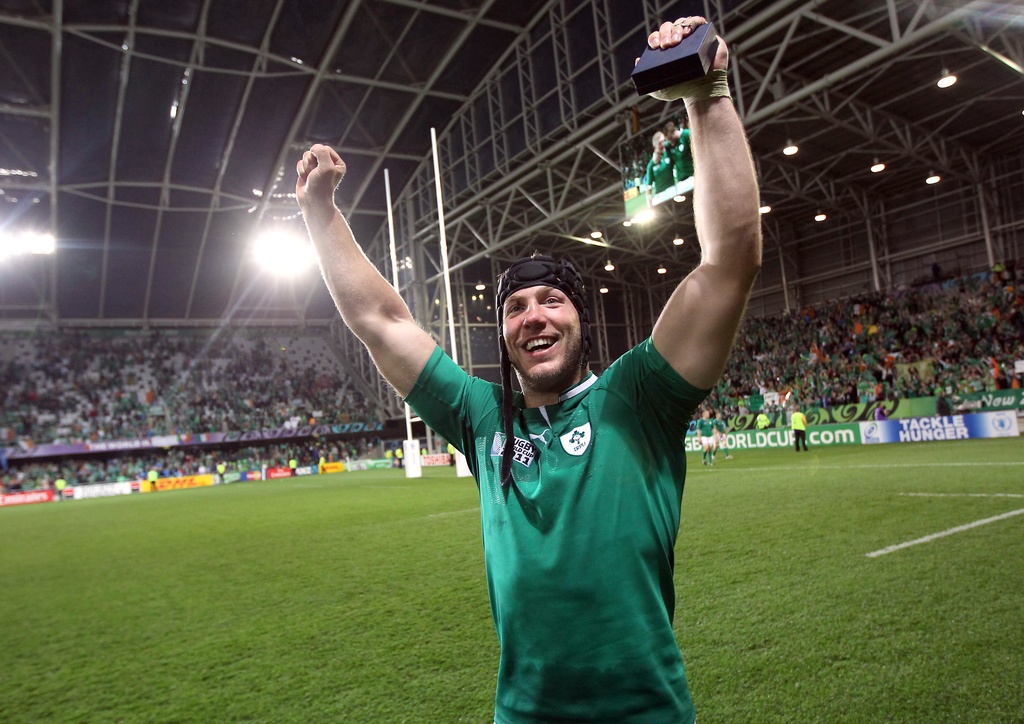 Rugby World Cup Preview 17/9/2015.2011 Rugby World Cup.Ireland vs Italy.Stephen Ferris celebrates at the end of the match.Mandatory Credit ©INPHO/Billy Stickland