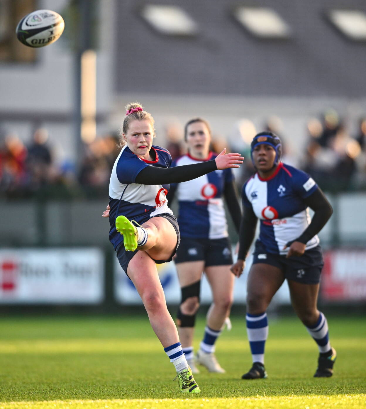 The Clovers, who are fourth, have had some notable performers, with Caitríona Finn landing six of her seven place-kicks for an 86% success rate, and fellow teenager Jemima Adams Verling (pictured above) has chipped in with two tries, 26 carries, two line breaks, and two breakdown steals.