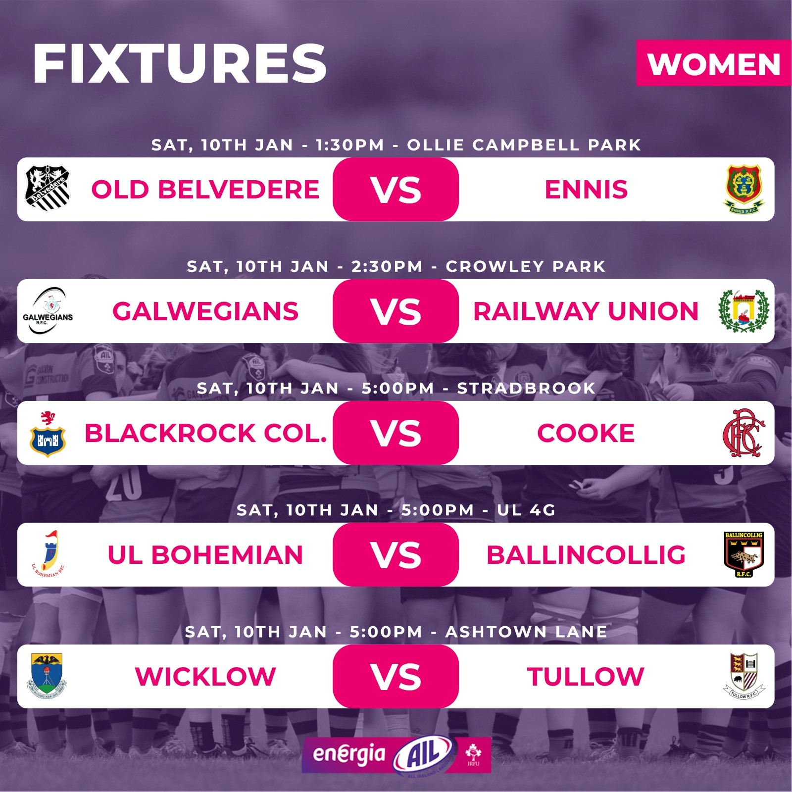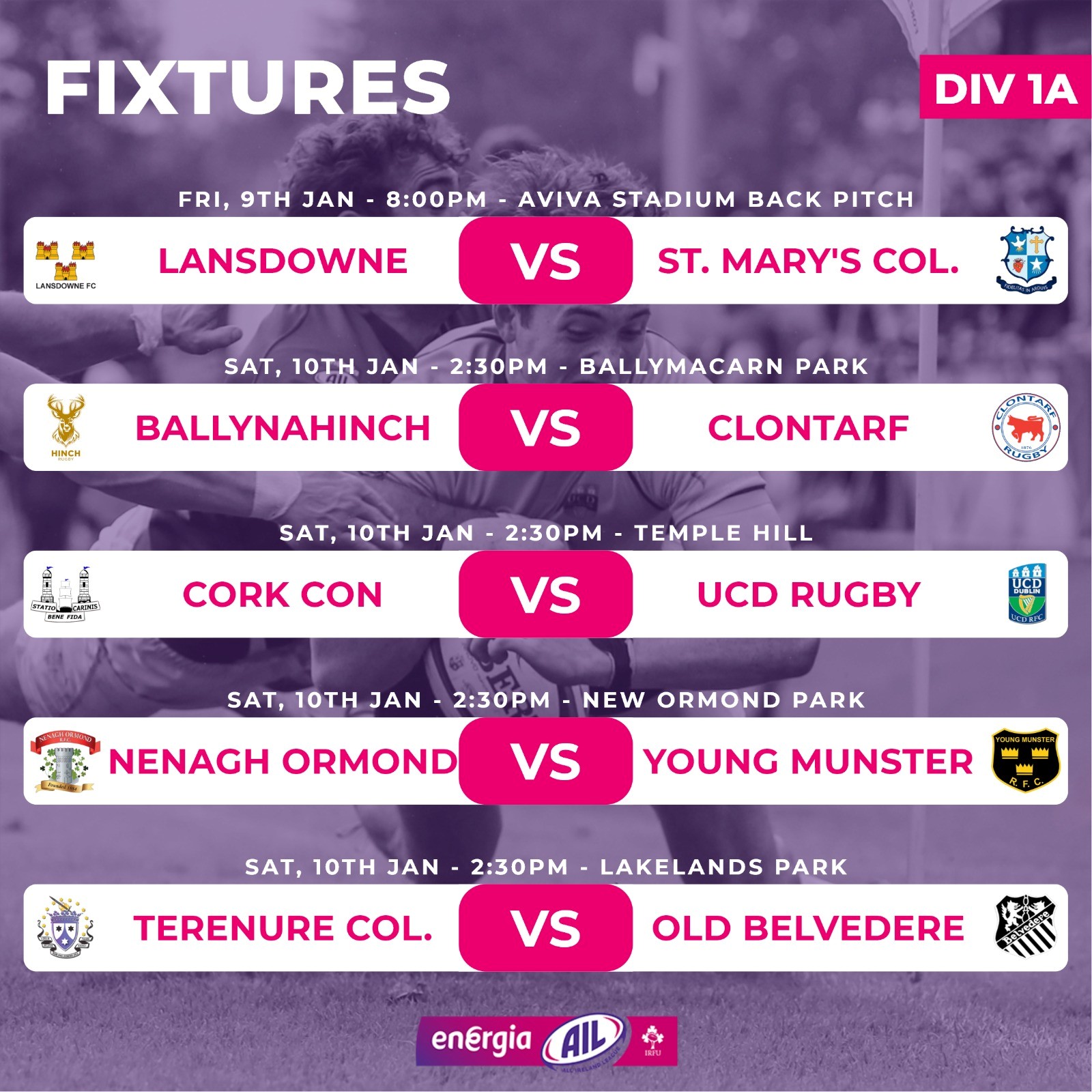 Energia All-Ireland League Fixtures At A Glance