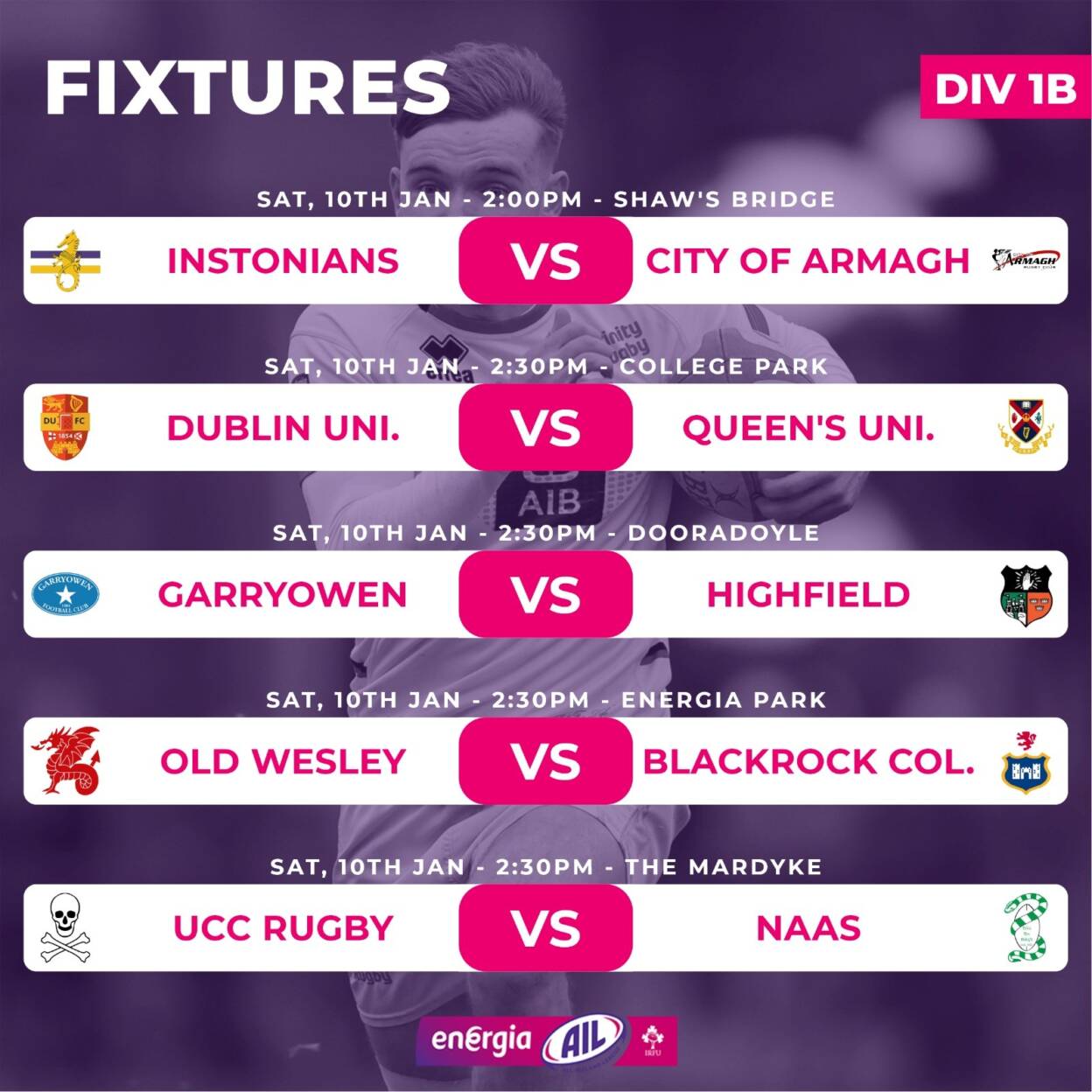 ENERGIA ALL-IRELAND LEAGUE MEN’S DIVISION 1B – ROUND 10: