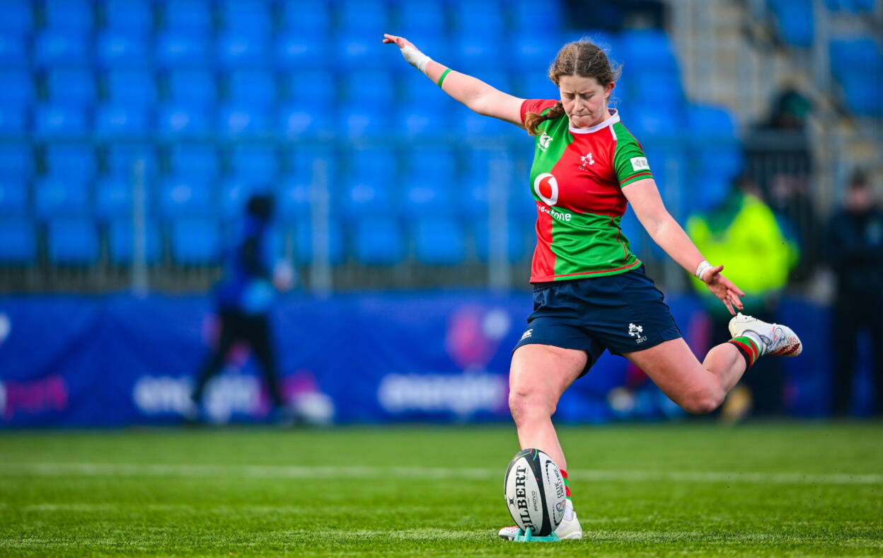 Clovers out-half Caitríona Finn kicked a crucial five points at the Arms Park, as well as making 62.7 metres from 12 carries. Navan’s Rosie Searle was in double figures for carries and tackles, and both players were involved in this week’s Ireland Women’s training camp.