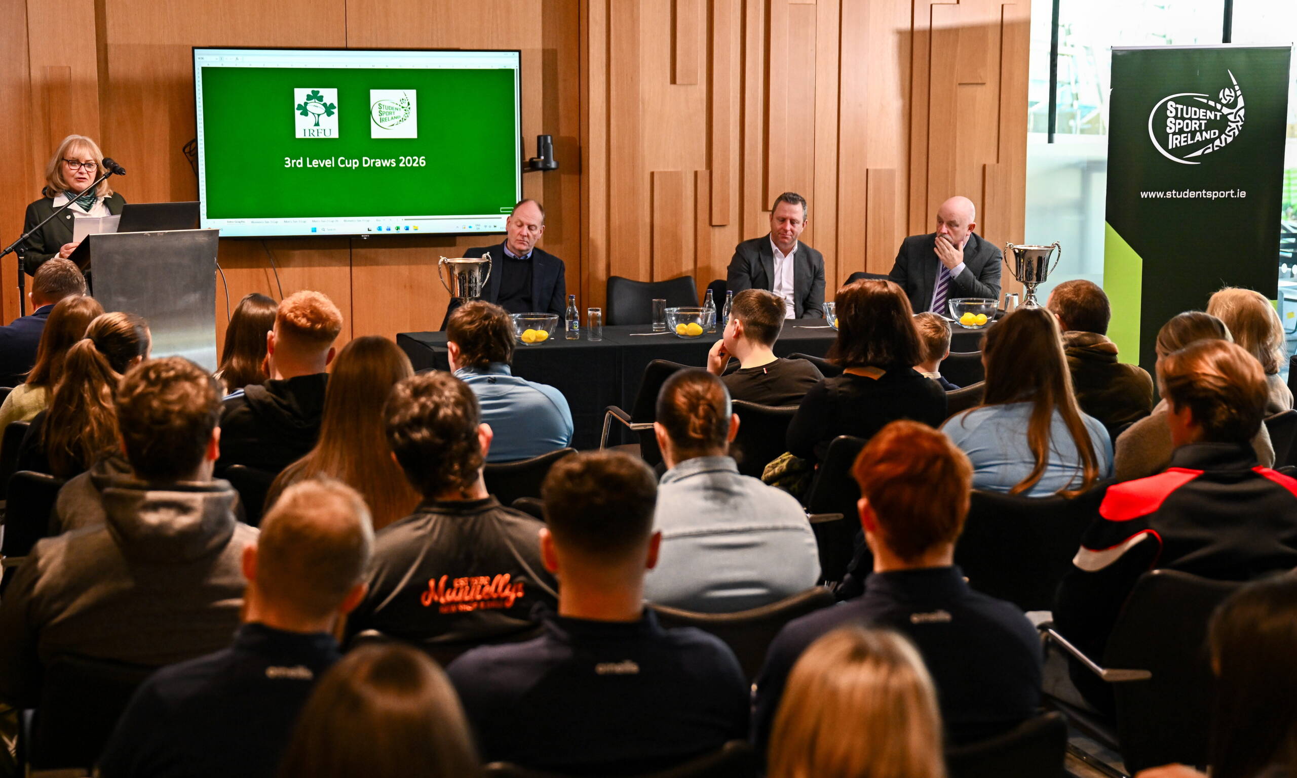 The launch and draws for the 2026 Student Sport Ireland/Irish Rugby Football Union Men’s and Women’s 3rd level senior rugby cup competitions were held yesterday afternoon in Aviva Stadium.
