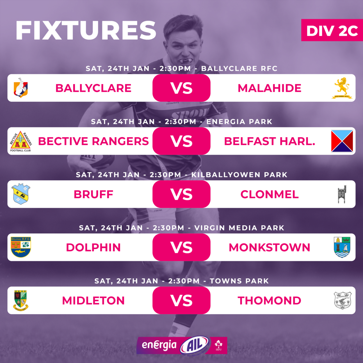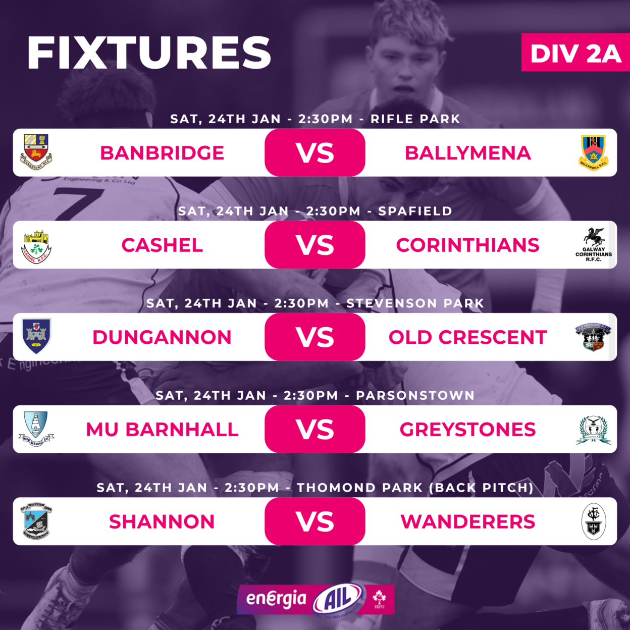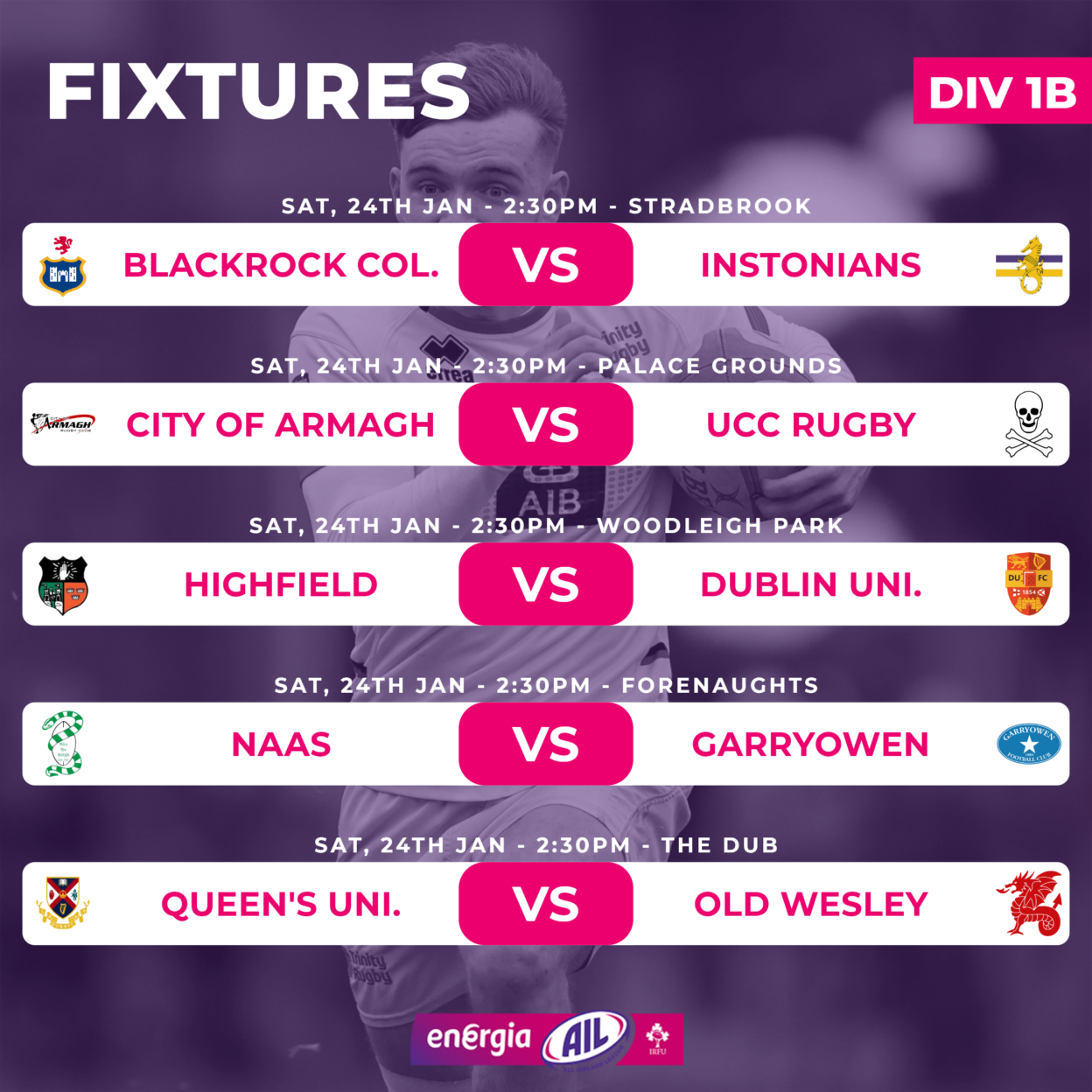 Energia All-Ireland League & Cup Fixtures This Weekend