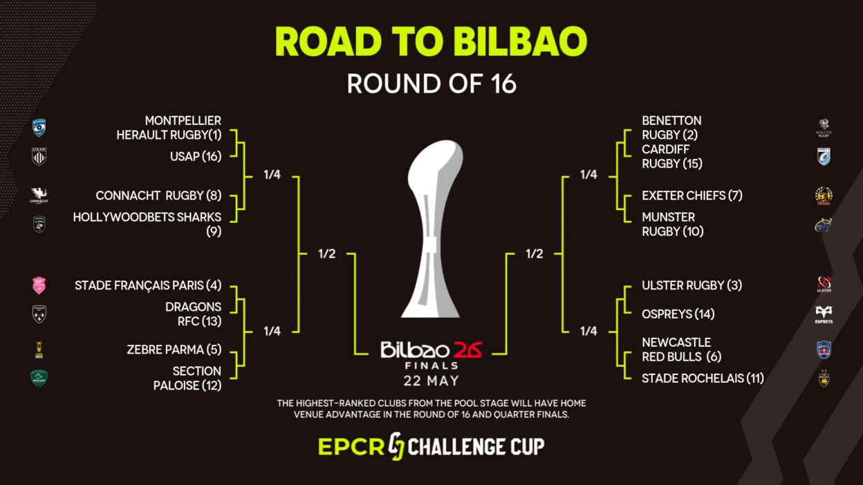 EPCR CHALLENGE CUP ROUND OF 16 FIXTURES: