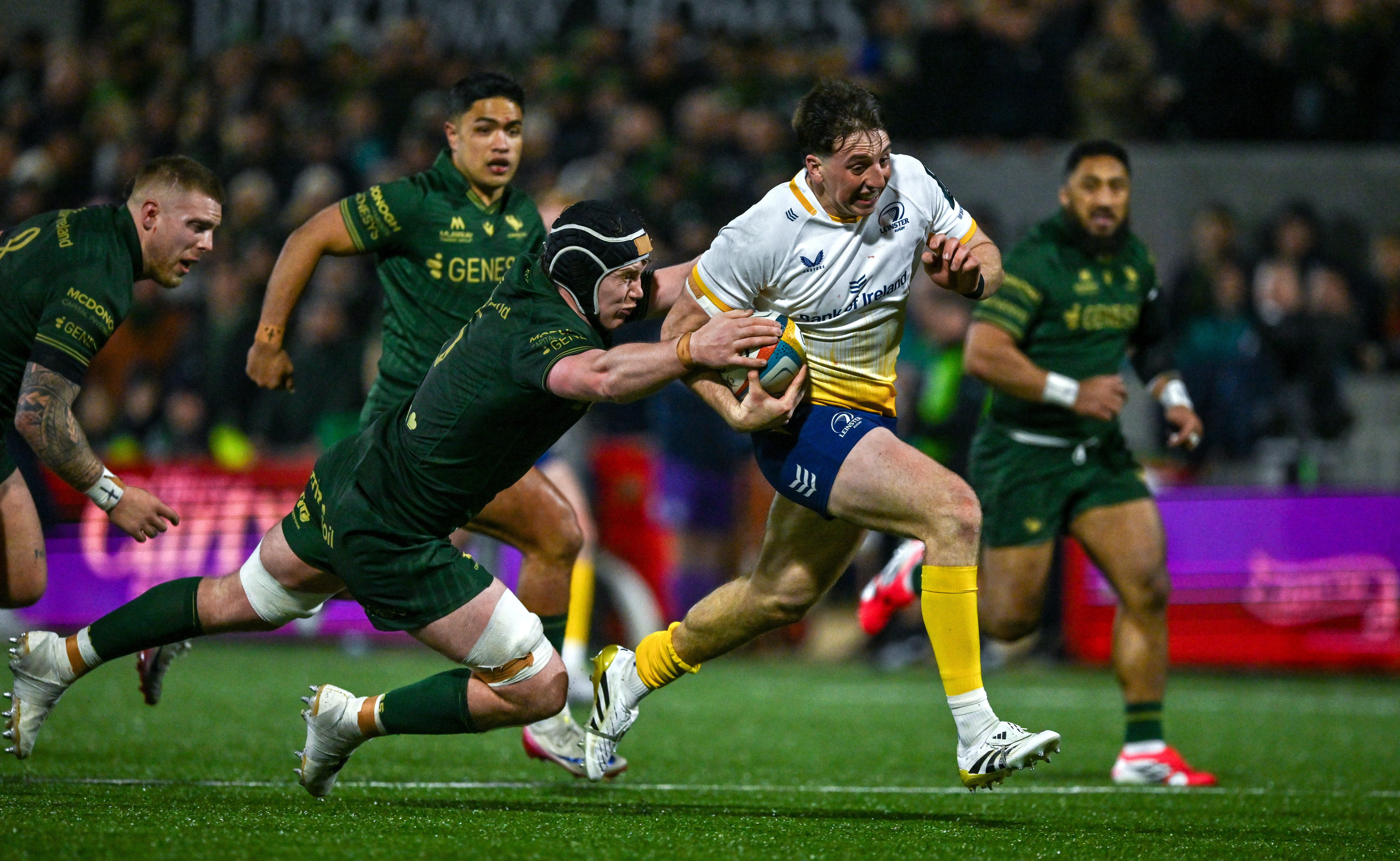 Just as Leinster looked to strike back off a maul, Jansen’s thunderous tackle on Gus McCarthy stopped them in their tracks and led to an important turnover. The westerners’ defence was certainly growing in stature.