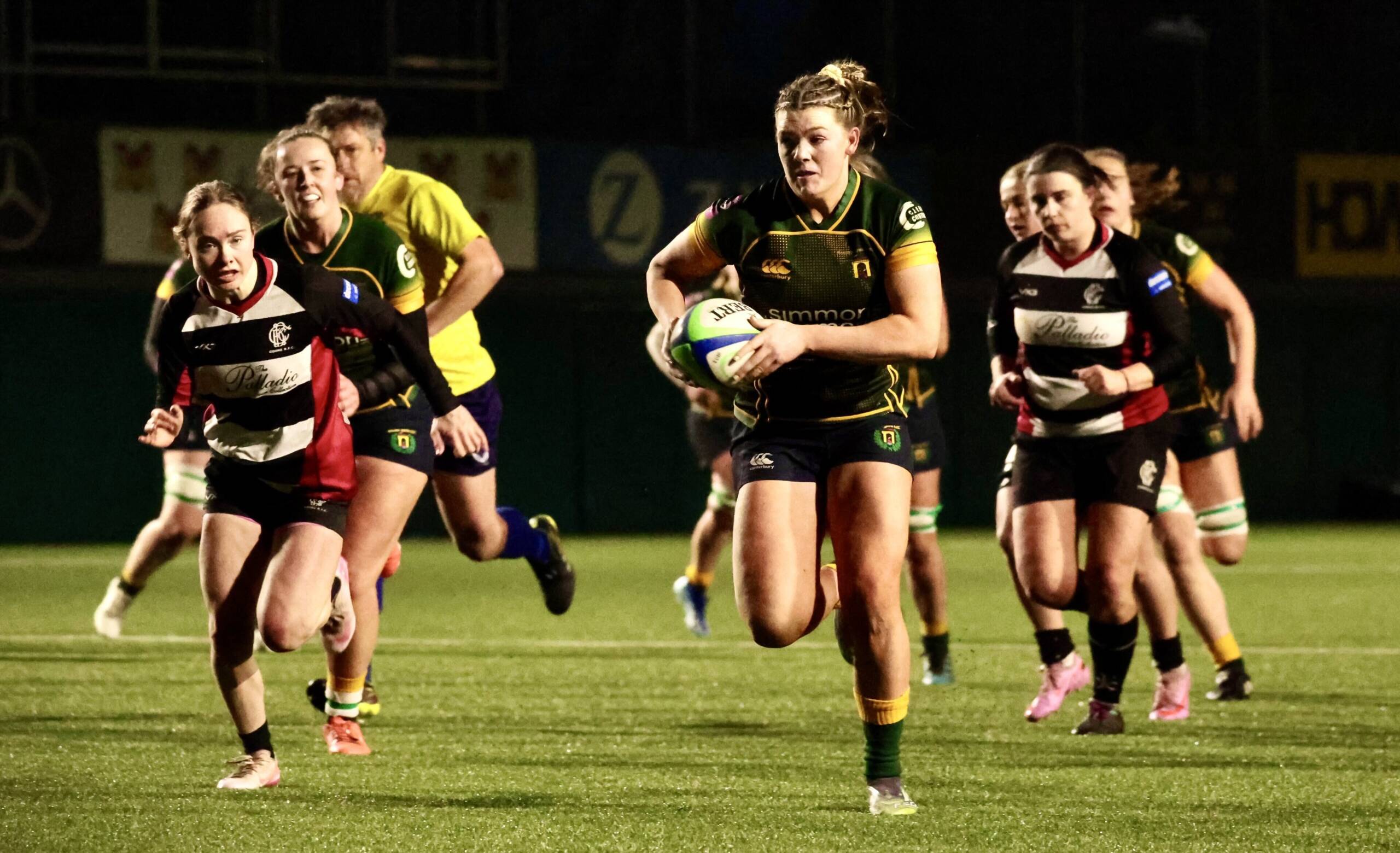 Kildare youngster Heidi Lyons is pictured running in a try for Railway Union against Cooke last time out ©Ronan Ryan