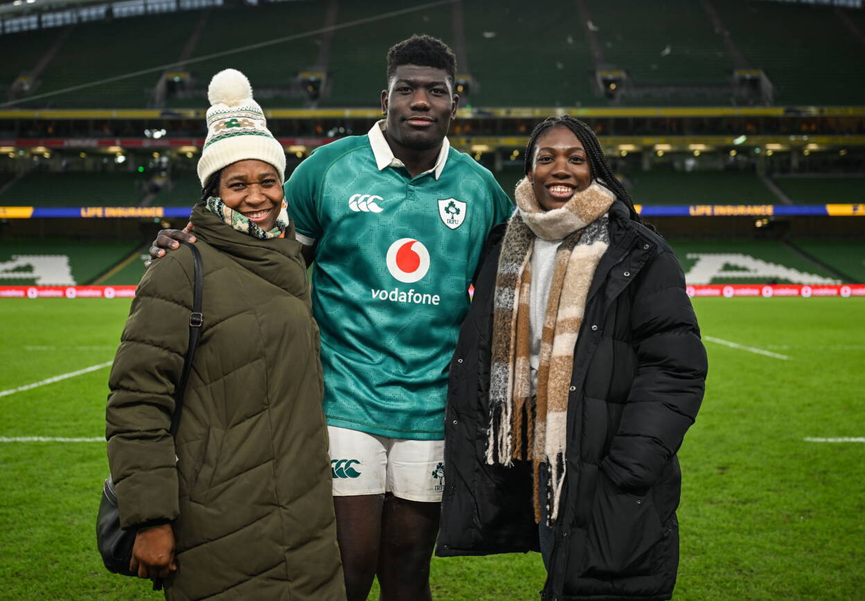 Hearing the noise generated by the home fans when he came on will live long in his memory, as well as his Munster team-mate, Craig Casey, giving him his first Ireland jersey in front of his mum Patience and siblings Moses, Favour, and Seán, who had surprised him by attending Thursday evening’s jersey presentation.