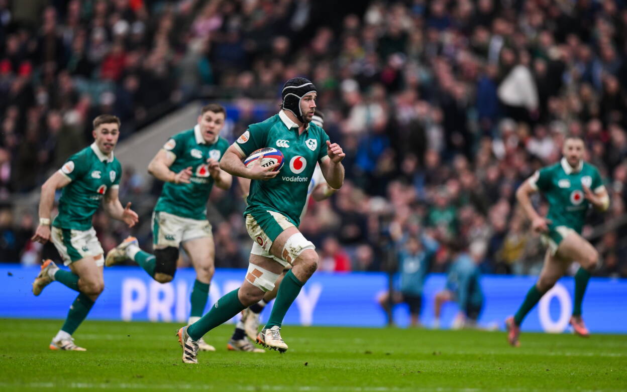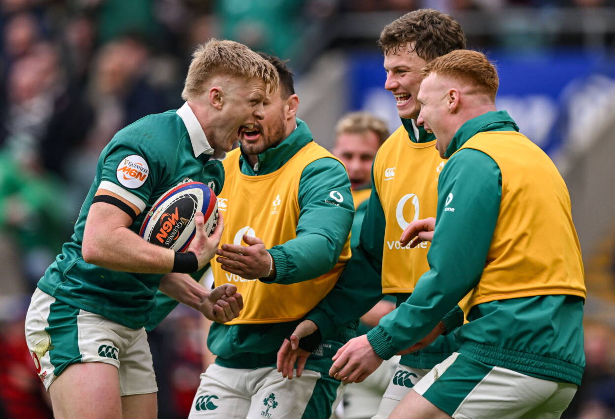 Tommy O’Brien replaced the injured James Lowe and ran in his first Guinnesss Men’s Six Nations try, adding to fellow winger Robert Baloucoune’s second of the 2026 Championship. Dan Sheehan and Jamie Osborne completed the try haul in the second half.