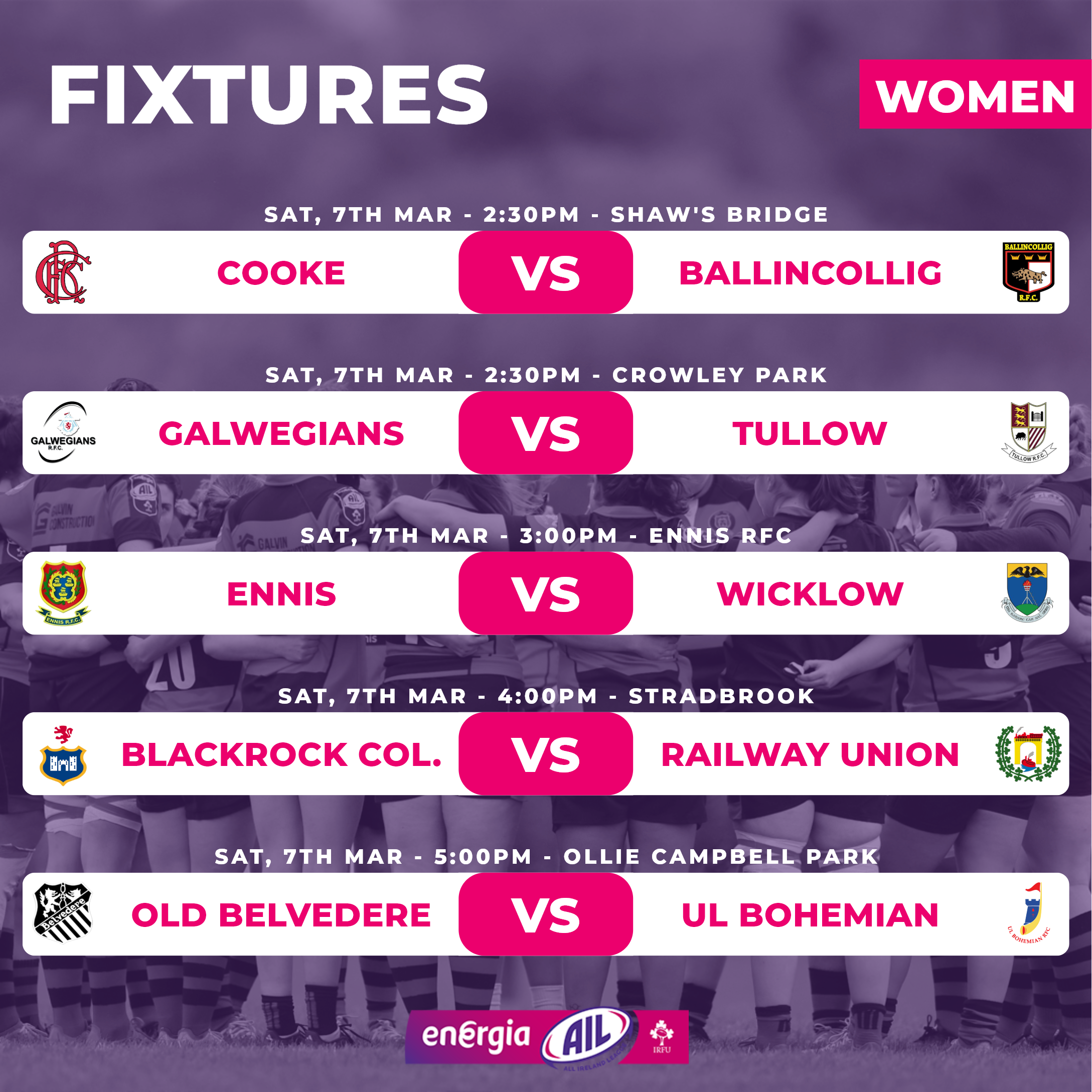 Galwegians (1) are the second unbeaten team in the Men’s Divisions this season; they’re on the road to Malone (5). The big game in 2B has to be Rainey (4) at home to UL Bohs (3) with twelve points between them in the table.
