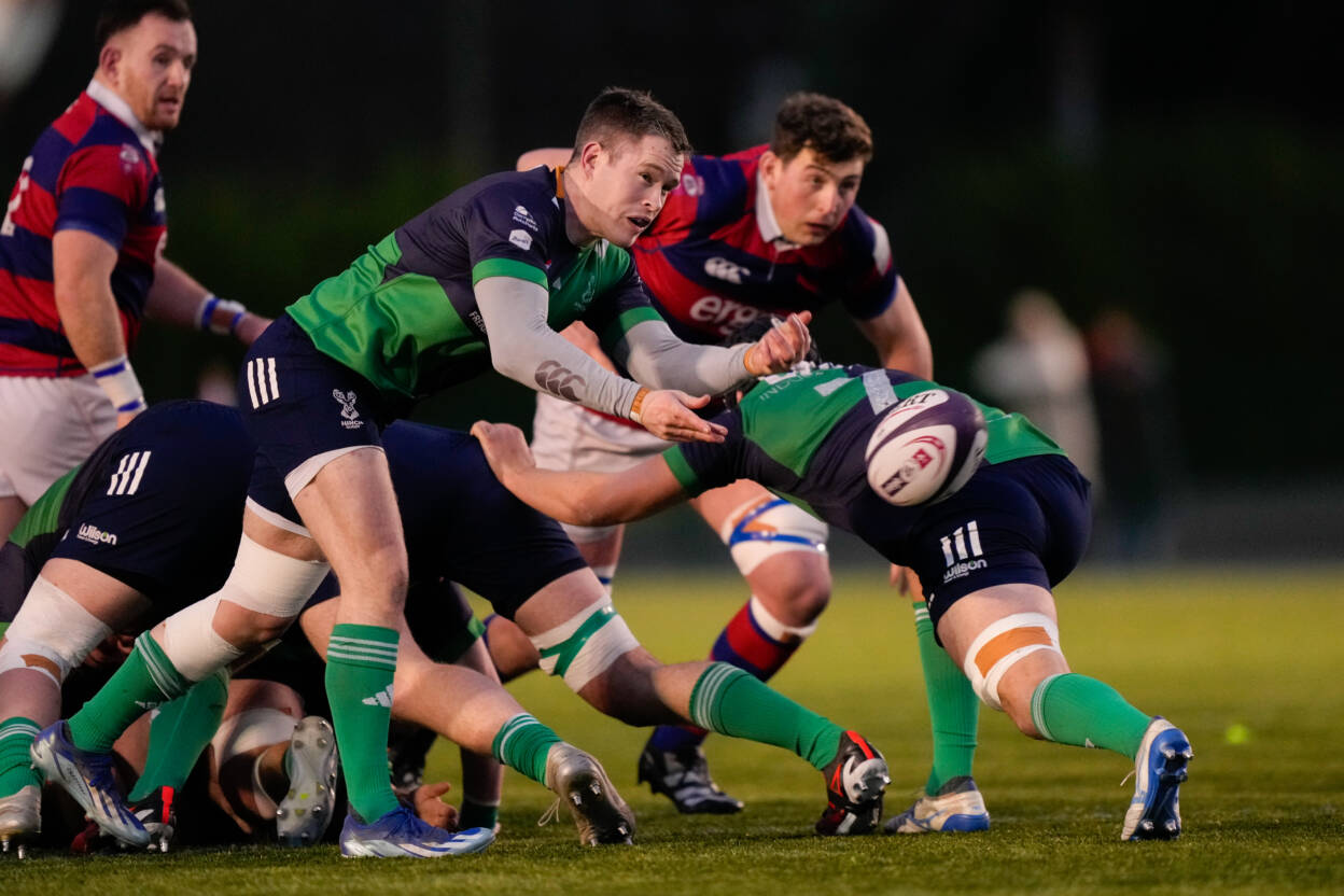 When the swirling wind caused trouble for Hugo Lennox who knocked on a high ball, the County Down outfit threatened out wide. Aaron Sexton drew a penalty, and despite their maul failing to launch, the visitors carried up closed before Ryan Connolly was held up.