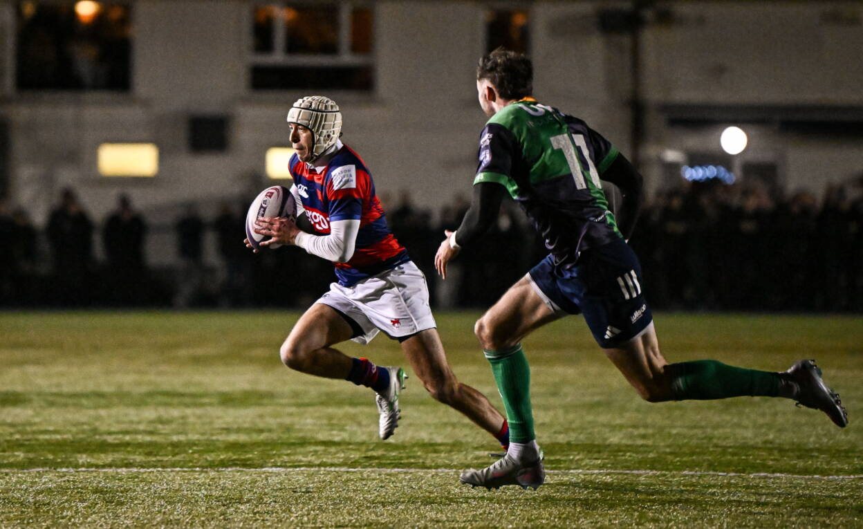 The north Dubliners opened the second half with their forwards on top. Alex Soroka stretched out for the line, the match officials adjudging that he did not get the grounding before losing the ball forward. ‘Hinch could not exit with the pressure still on their defence.
