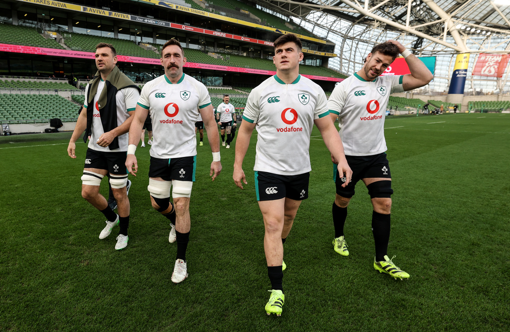 Ireland Rugby Captain's Run, Aviva Stadium, Dublin 21/11/2025 Tadhg Beirne, Jack Conan, Dan Sheehan and Caelan Doris Mandatory Credit ©INPHO/Dan Sheridan
