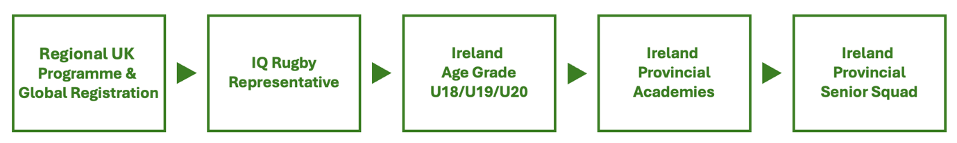 IQ Rugby operates as an integral link of the IRFU High Performance Pathway, offering Irish Qualified (IQ) players from outside of Ireland an opportunity to progress towards playing in and/or for Ireland.
