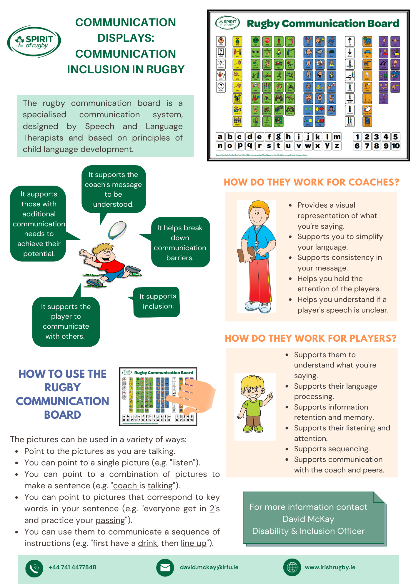 To help clubs make the most of their board, the IRFU has created a full support package including an educational video, fact sheet and downloadable copy of the board to print.
