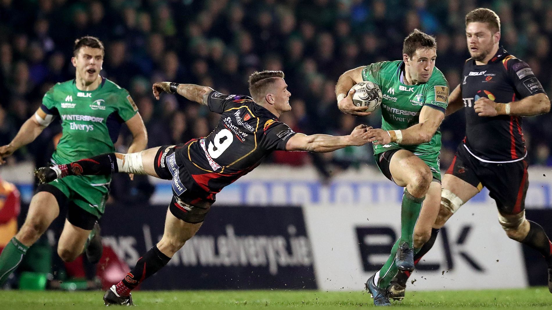 Following his early entry into the game for Dorian Jones, young replacement O’Brien opened the Dragons’ account with a 17th minute penalty before a scrappy spell saw Connacht lose some hard-earned territory.