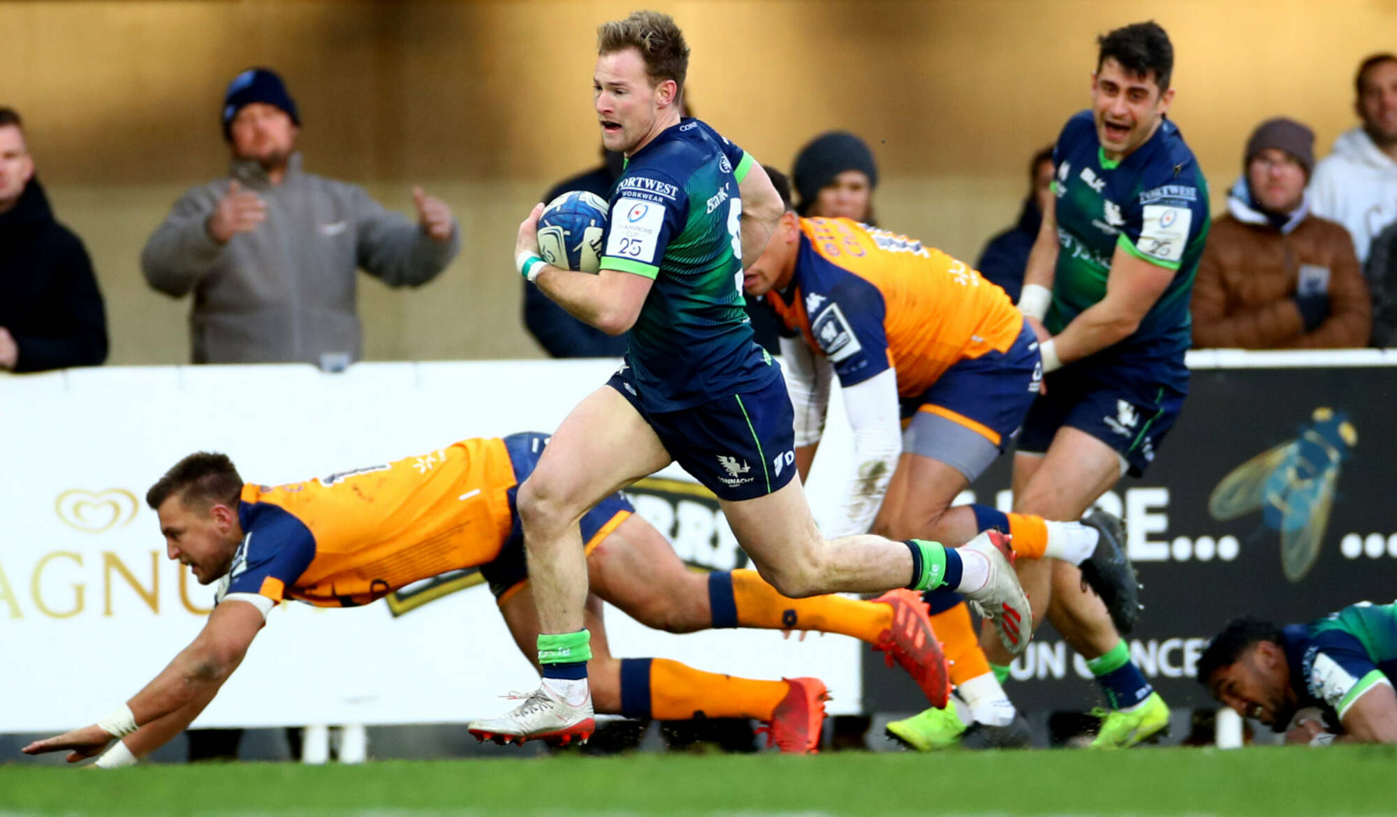 Connacht had the momentum at half-time despite trailing 21-0 at one stage due to seven-pointers from Levan Cilachava and Gabriel N’gandebe (2). The province produced a dazzling 10-minute spell, either side of the break, that saw them reel off four tries.