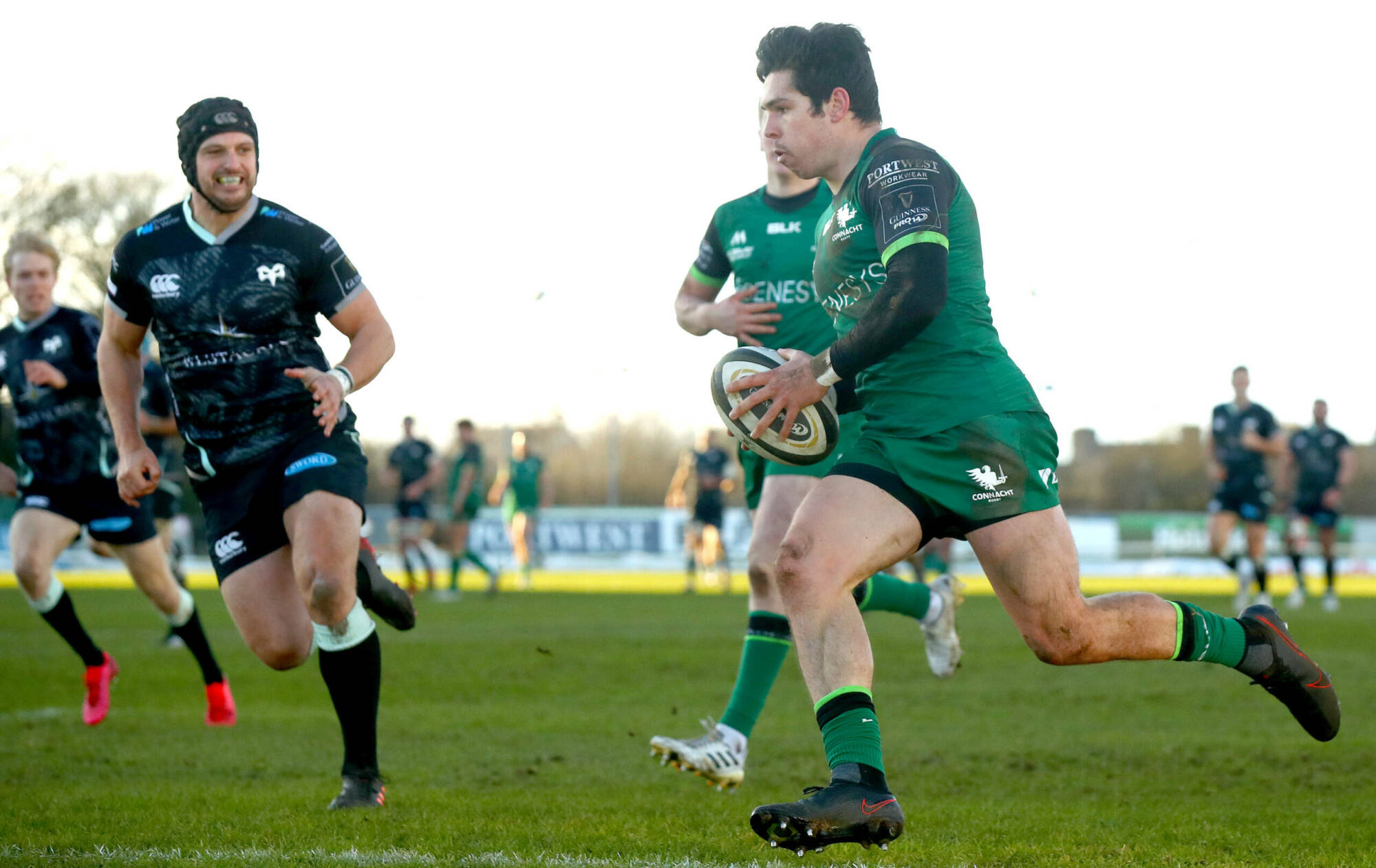 Lively Connacht winger Alex Wootton ran in his eighth try in 11 games so far this season ©INPHO/James Crombie
