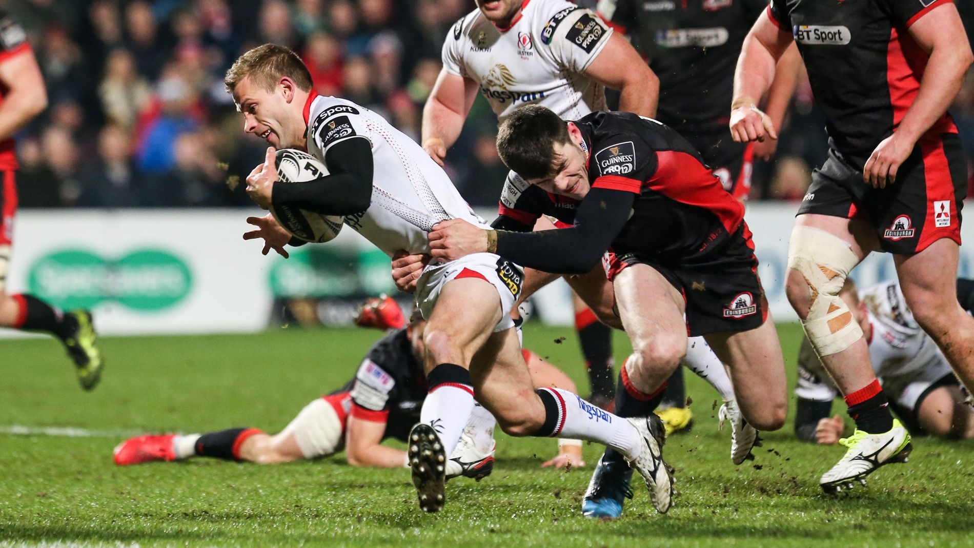 As Ulster settled into the game, two close calls on the right wing saw both Stockdale and Cave bundled into touch five metres out in quick succession, before neat interplay in the next attack between Olding and Marshall got the scrum half over in the ninth minute, Nelson adding the extras.