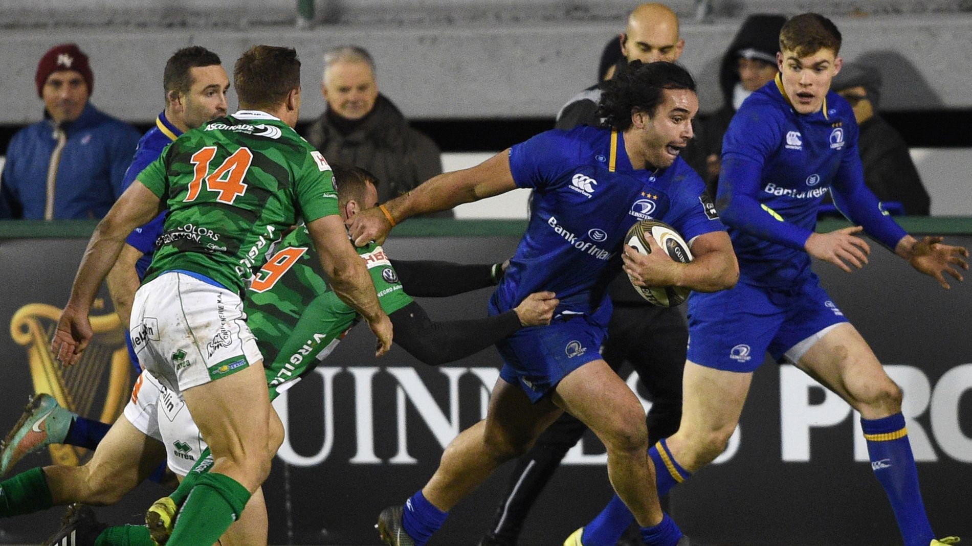 Kieran Crowley’s charges had the better of the third quarter, gradually getting into scoring range. Robert Barbieri had a try ruled out for a knock-on, but a Reid high tackle allowed Benetton to set up camp close to the Leinster line, working through a series of pick-and-goes before centre Brex barged in under the posts with 56 minutes on the clock.