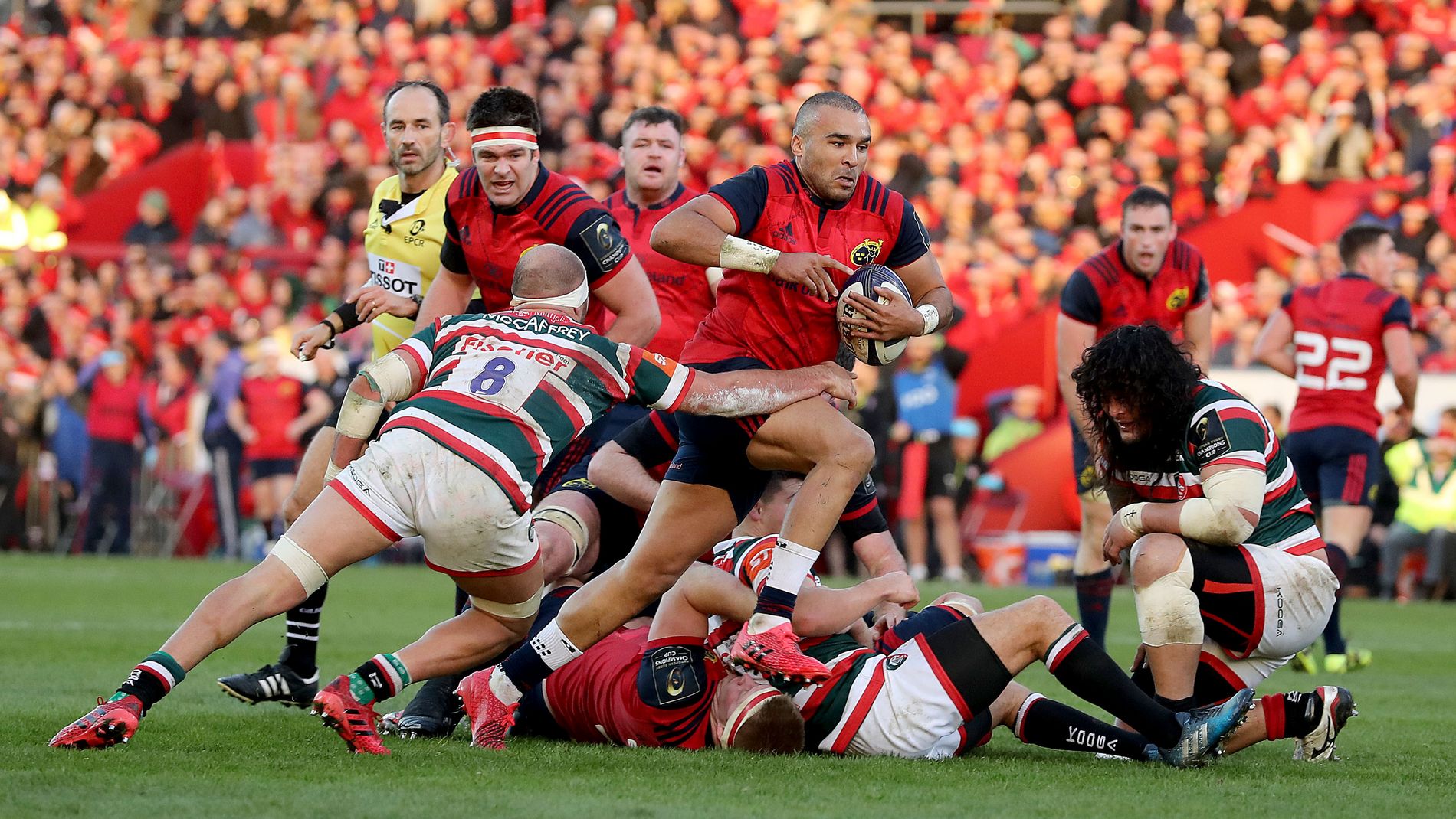 Bleyendaal converted for 19-0 and with Keith Earls fizzing with intent, the province held territory up to the break. Despite better play from Leicester on the resumption, the immense physicality of the Munster pack held them at bay.