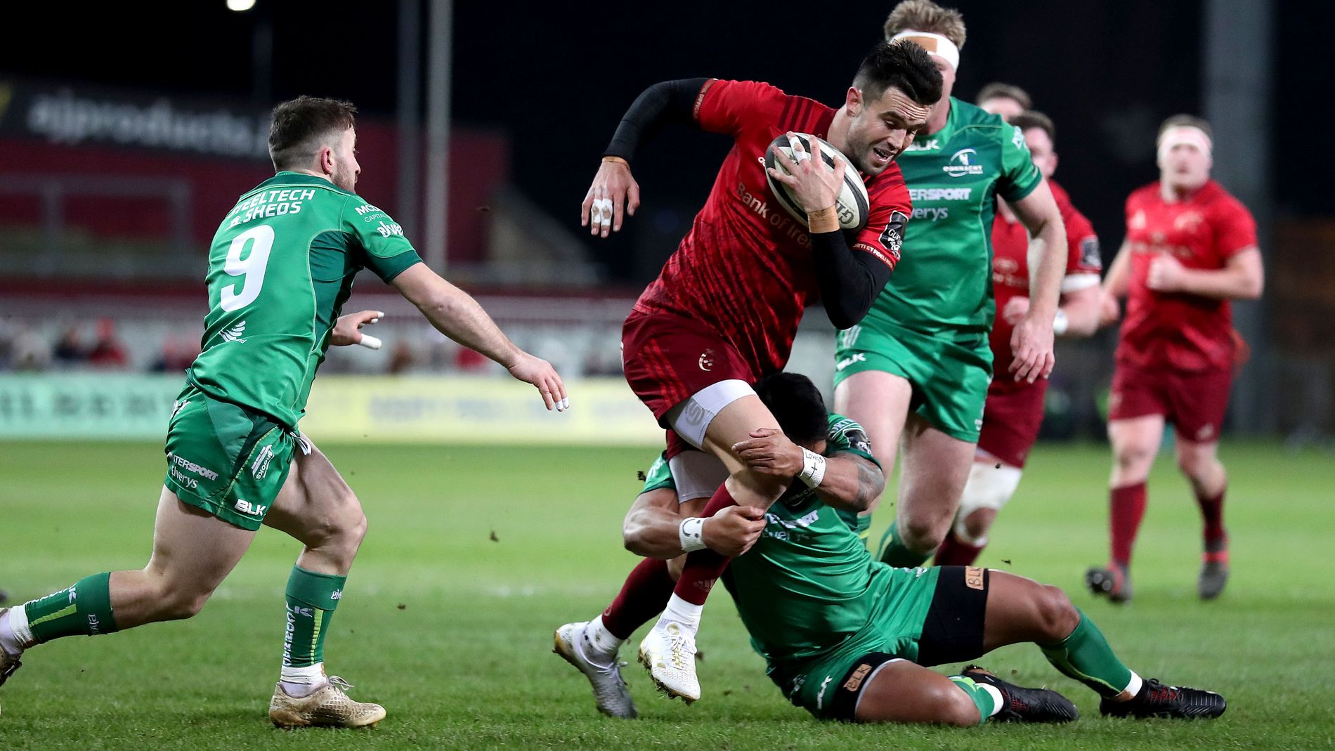 Quinn Roux’s tip tackle on Keith Earls, the scorer of Munster’s third try, could easily have been a red card for the Connacht lock rather than a yellow, and a trademark close-range brace from Conor Murray hammered home his team’s advantage before Tom McCartney replied late on for the visitors.