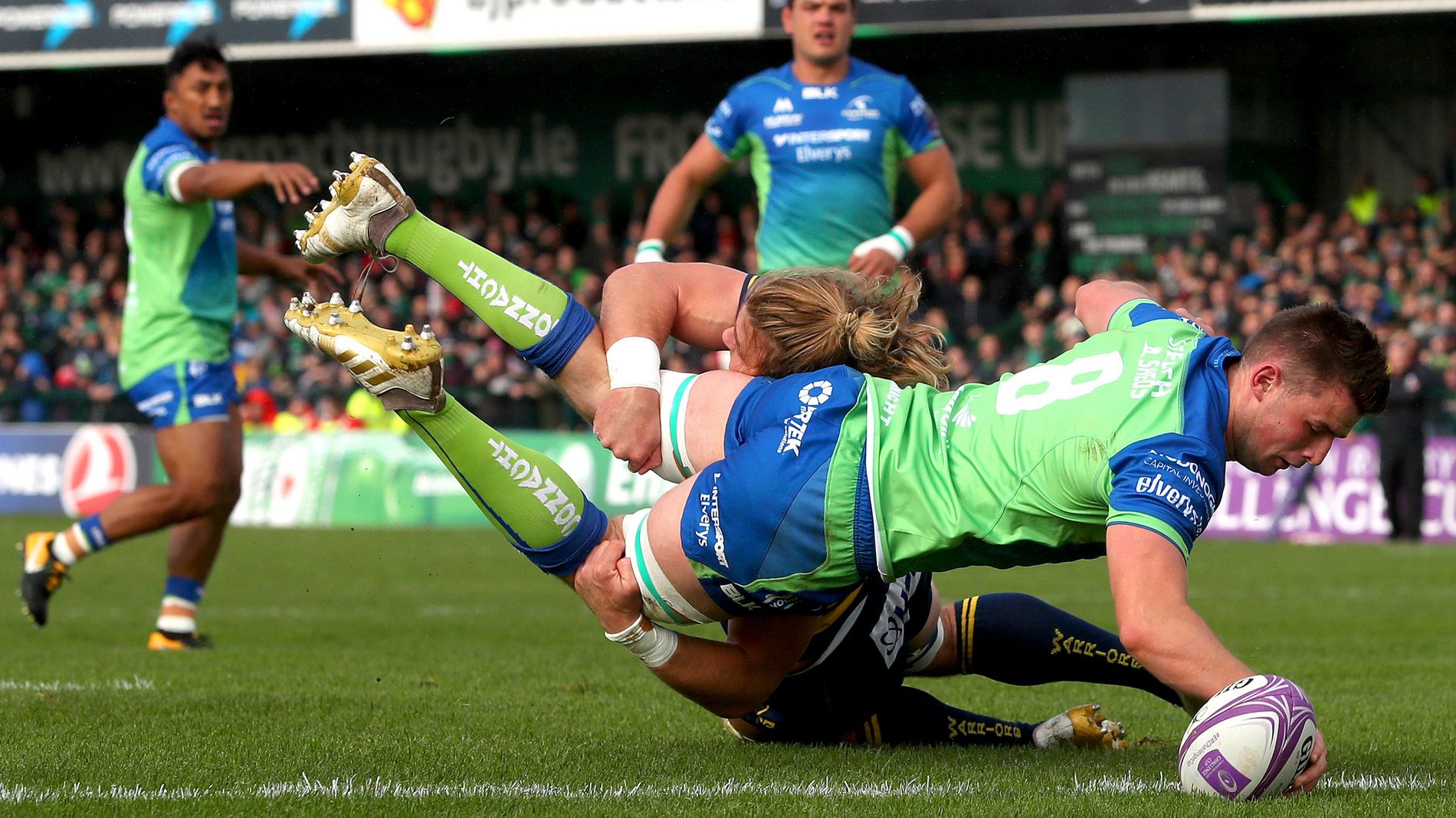 The pivotal moment arrived just six minutes later when out-half Carty grubbered through a gap in midfield and the ball sat up nicely for Healy to pounce and race in behind the posts. No better moment for the winger’s 15th European score having become Connacht’s top try scorer in Europe last week with a brace in Geneva.
