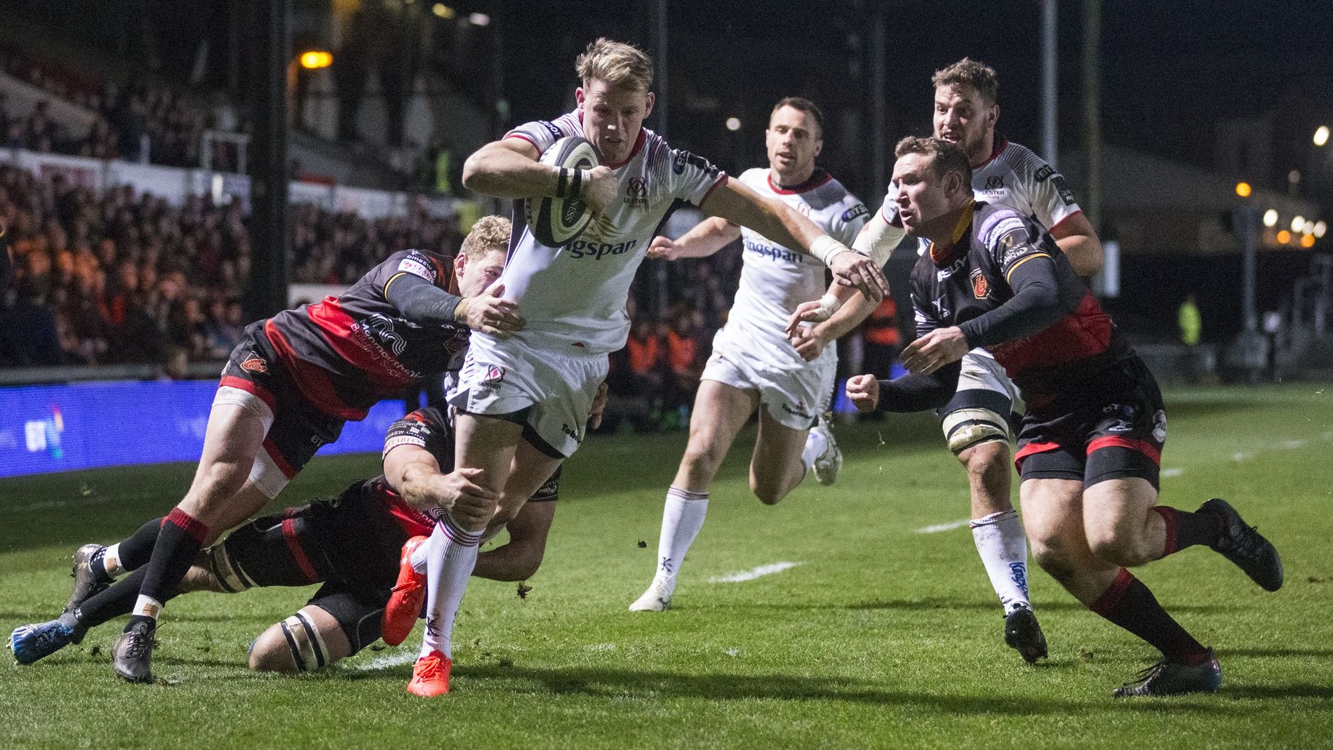 With a brand new front row of Callum Black, Rory Best and Andrew Warwick in the mix on 50 minutes – and Cooney on for Marshall at scrum half – Ulster refused to release their stranglehold on the match, and when Gilroy rode three tackles to ground the ball five minutes later for the bonus point and a 27-15 lead, it was no more than their second half performance had deserved.