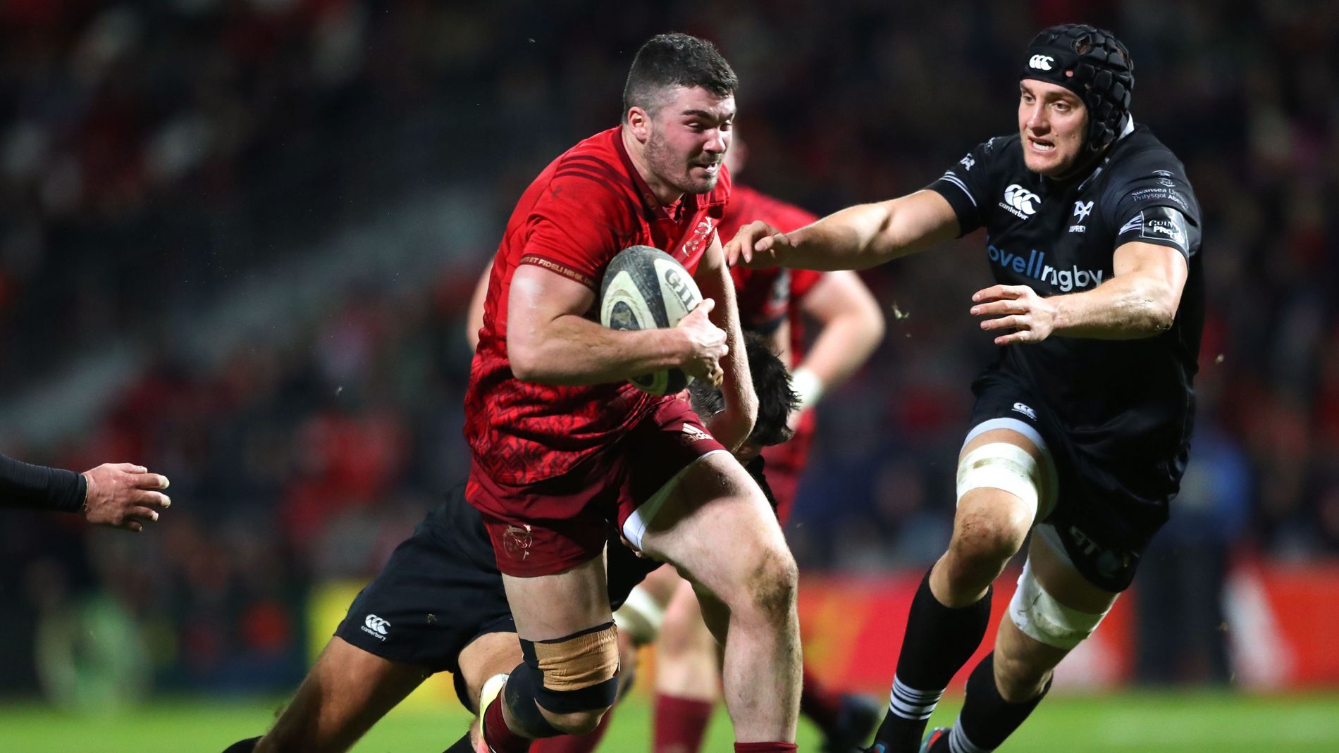 Jeff Hassler squeezed in a late reply before half-time, but Rory Scannell bagged the bonus point early in the second half before the Ospreys, who were missing 22 players due to Wales commitments and injuries, cancelled out a Jack O’Donoghue effort with a 70th-minute consolation score from teenage openside Jones.
