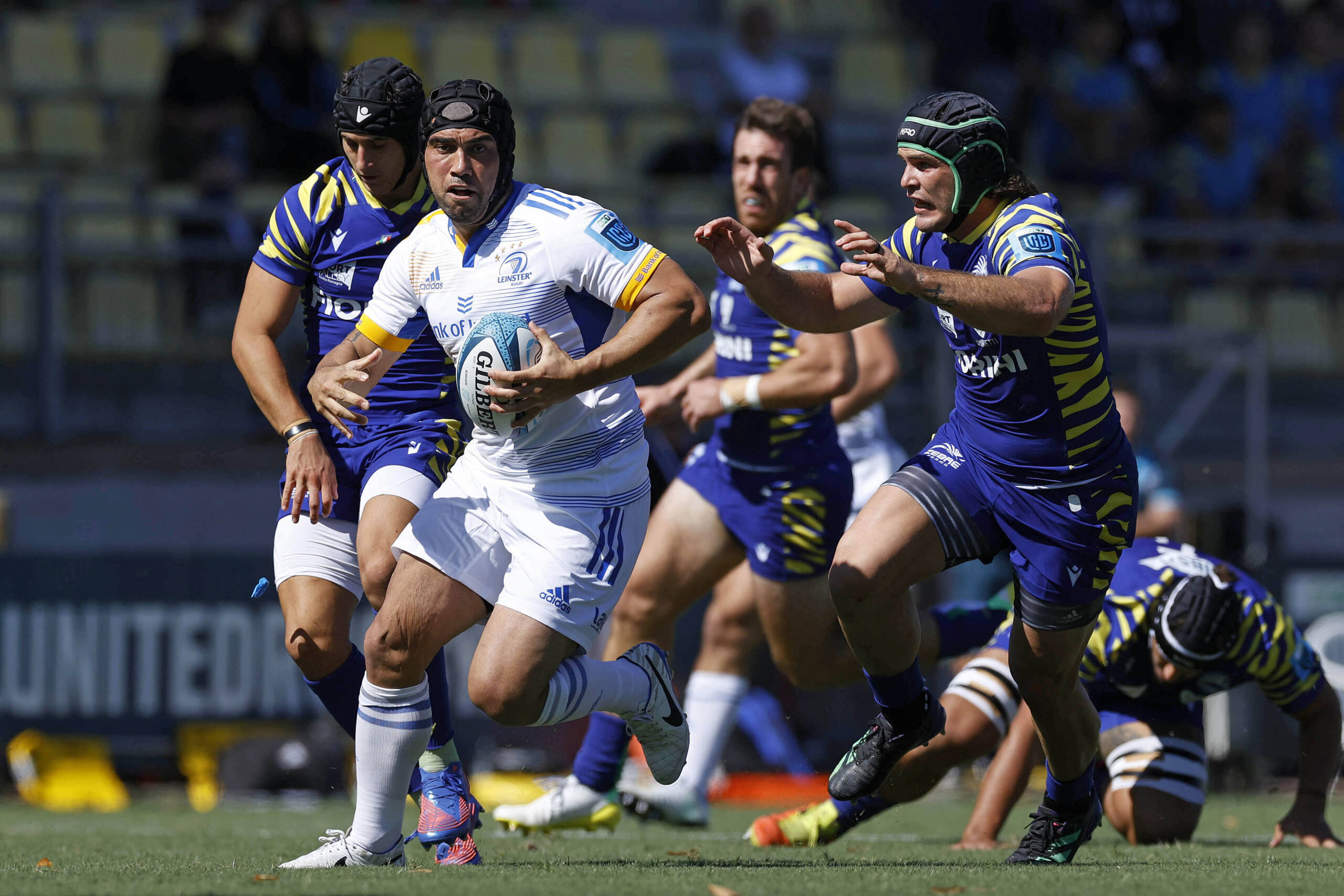Leinster's debutant centre Charlie Ngatai makes an early break during their United Rugby Championship opener in Parma ©INPHO/Matteo Ciambelli