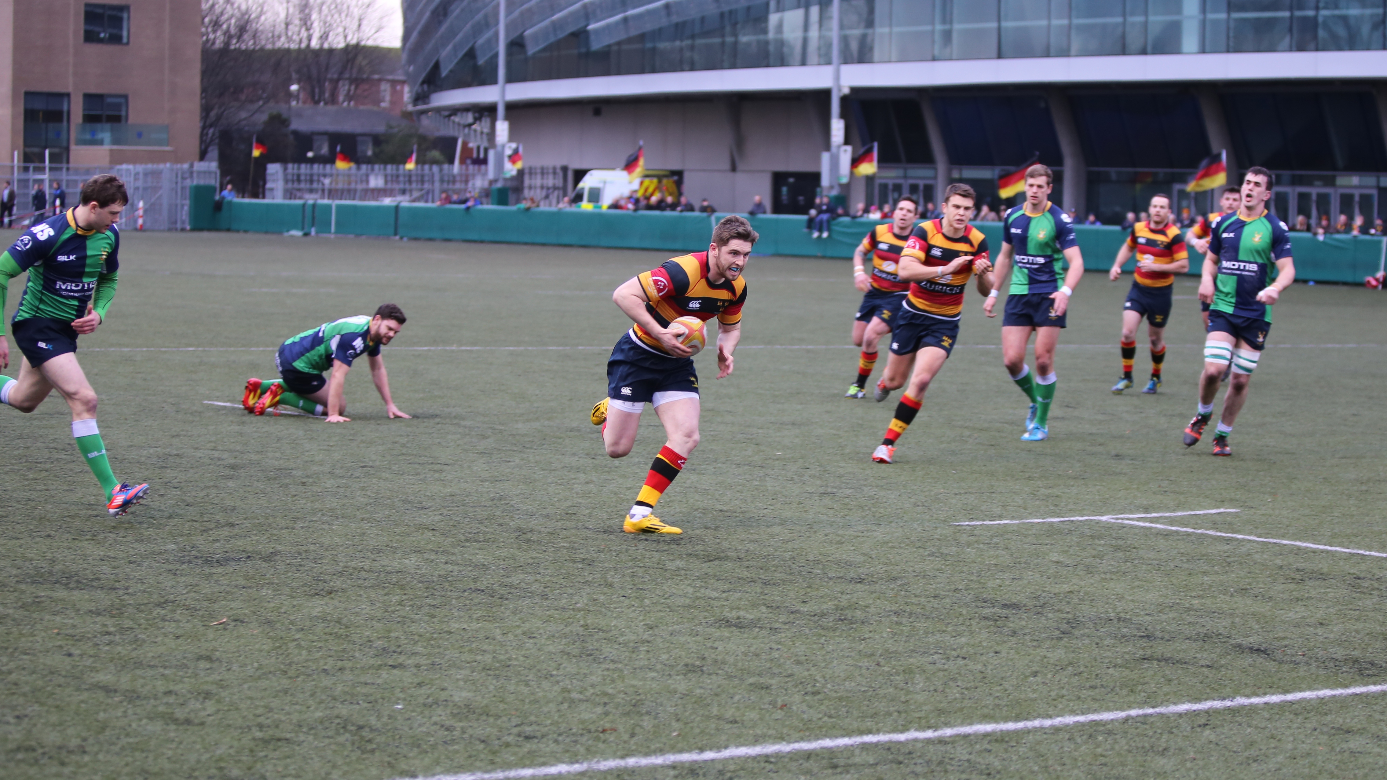 The next scrum led to another Lansdowne penalty and a good break by the lively Griggs was followed up by a block down by the same player. A slick back-line move then saw Fitzpatrick enter the line and the winger's speed carried him through the cover for the opening try in the 11th minute. Captain Deasy added the extras with a fine conversion from wide out.
