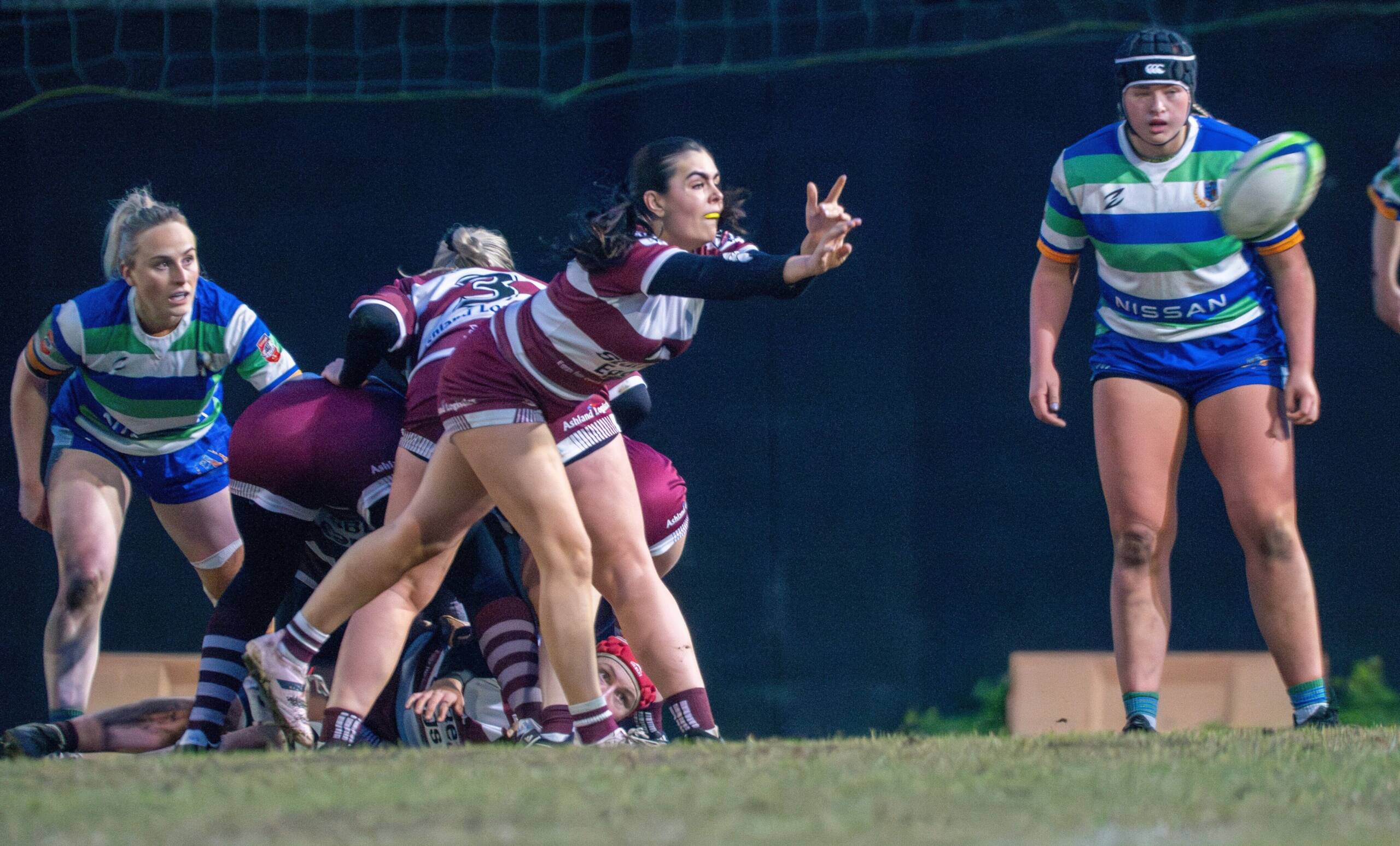 Tullow scrum half Aoife McGrath throws a pass during their round 13 clash with fellow Leinster side Suttonians ©Annraoi Blaney