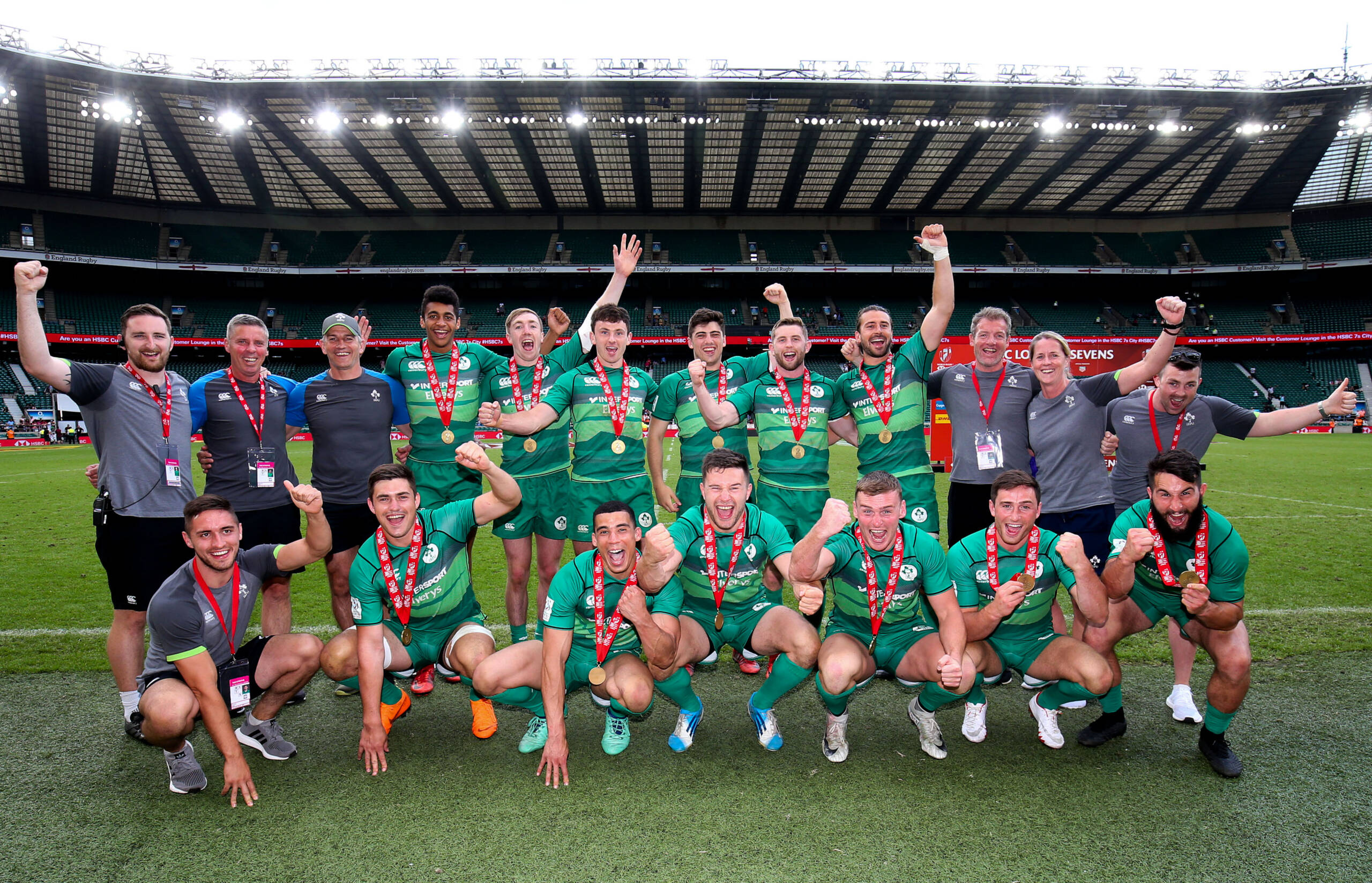 HSBC London Sevens, Bronze Cup Final, Twickenham, London, England 3/6/2018 Ireland 7s vs England 7s Ireland celebrate their third place finish Mandatory Credit ©INPHO/Andrew Fosker